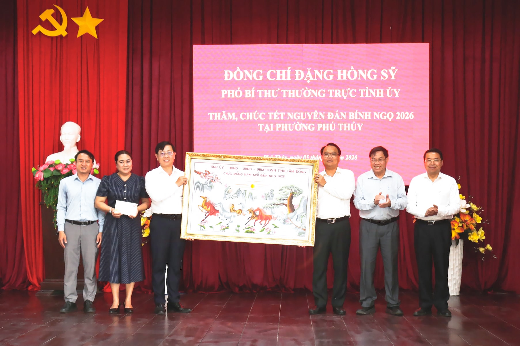 Chiều 5/2, Đoàn công tác của tỉnh Lâm Đồng do đồng chí Đặng Hồng Sỹ, Phó Bí thư Thường trực Tỉnh ủy làm Trưởng đoàn đã đến thăm, tặng quà và chúc Tết cán bộ và nhân dân phường Phú Thủy, tỉnh Lâm Đồng.