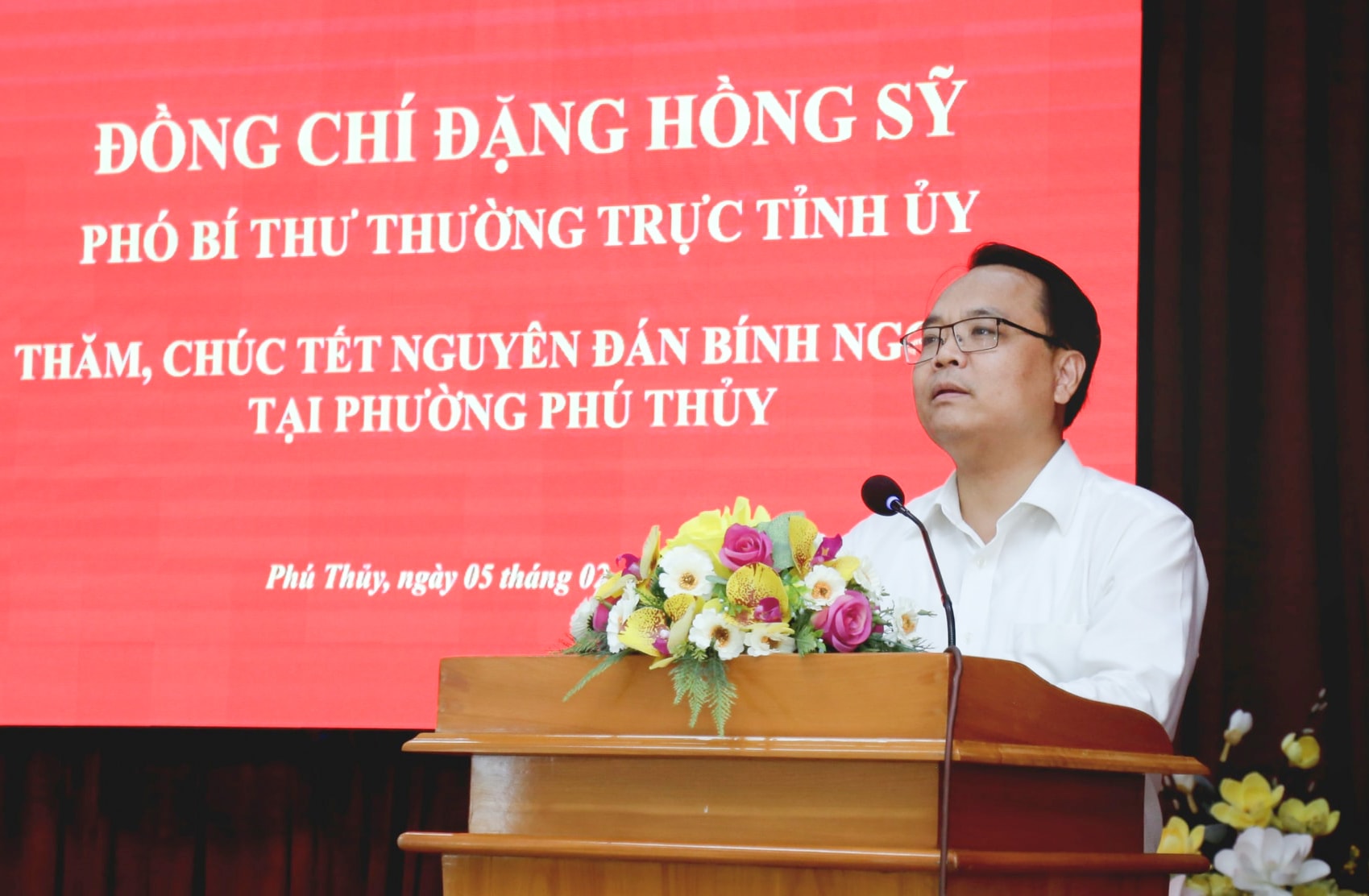 Nhân dịp Tết cổ truyền của dân tộc, đồng chí Đặng Hồng Sỹ gửi lời chúc mừng năm mới tới các đối tượng người có công với cách mạng, người có uy tín trong đồng bào dân tộc thiểu số, cùng các hộ nghèo, hộ cận nghèo, hộ gia đình có hoàn cảnh khó khăn trên địa bàn phường Phú Thủy. Đồng chí mong muốn các gia đình tiếp tục phát huy truyền thống cách mạng, đoàn kết, nỗ lực vươn lên trong cuộc sống, tích cực tham gia các phong trào thi đua yêu nước tại địa phương.