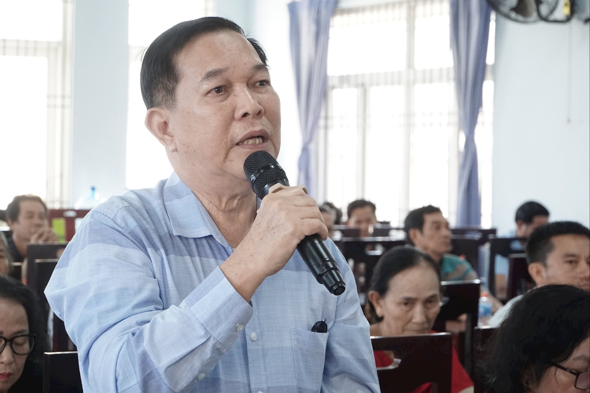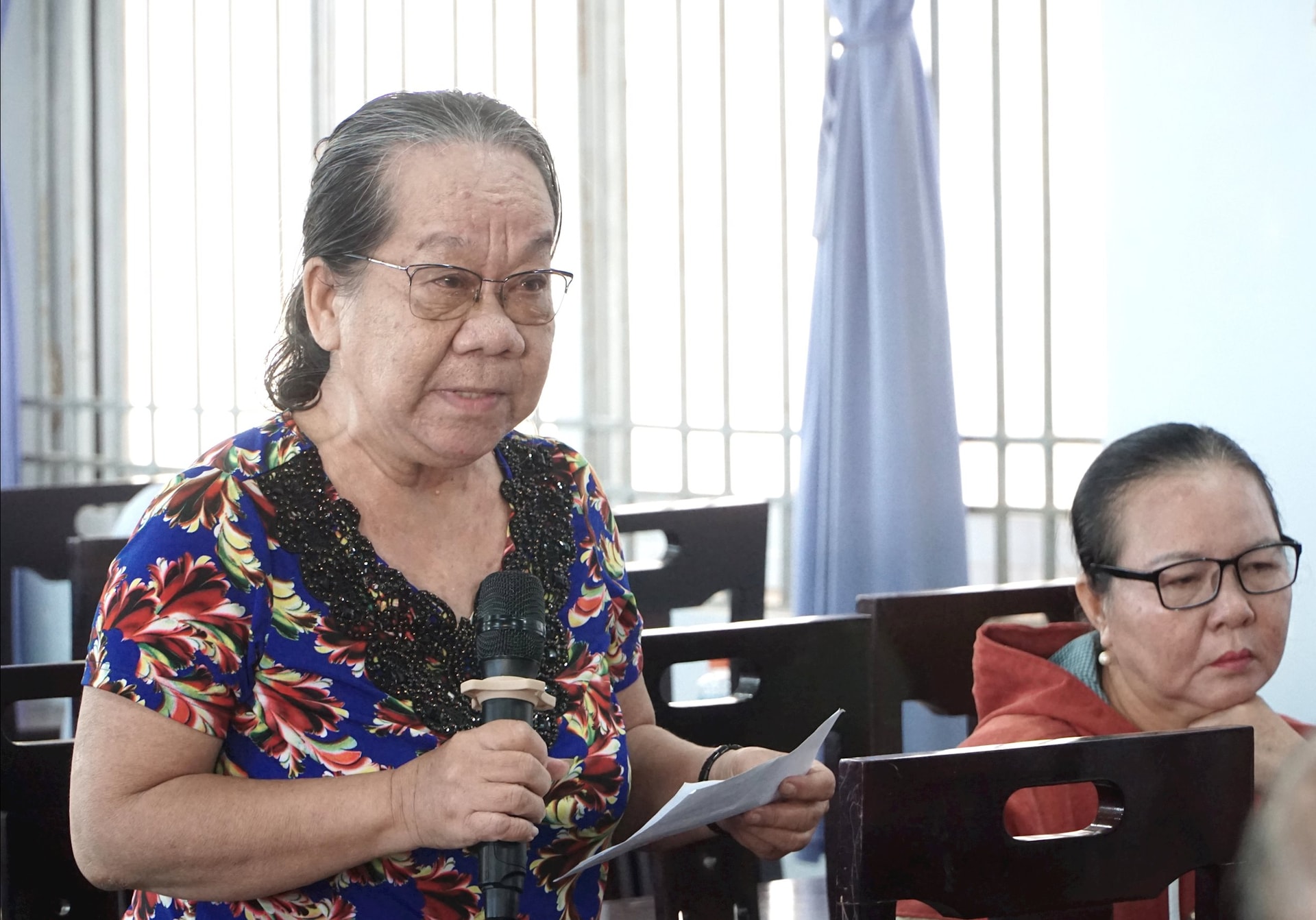 Cử tri Đặng Thị Bích Thuận (khu phố 9) bày tỏ sự đồng tình với việc Chính phủ ban hành quy định xử phạt hành vi hát karaoke gây tiếng ồn, góp phần giữ gìn trật tự, an ninh khu dân cư. Đồng thời, cử tri kiến nghị quan tâm hơn đến chế độ, chính sách đối với người cao tuổi, đảm bảo kịp thời và đầy đủ.
