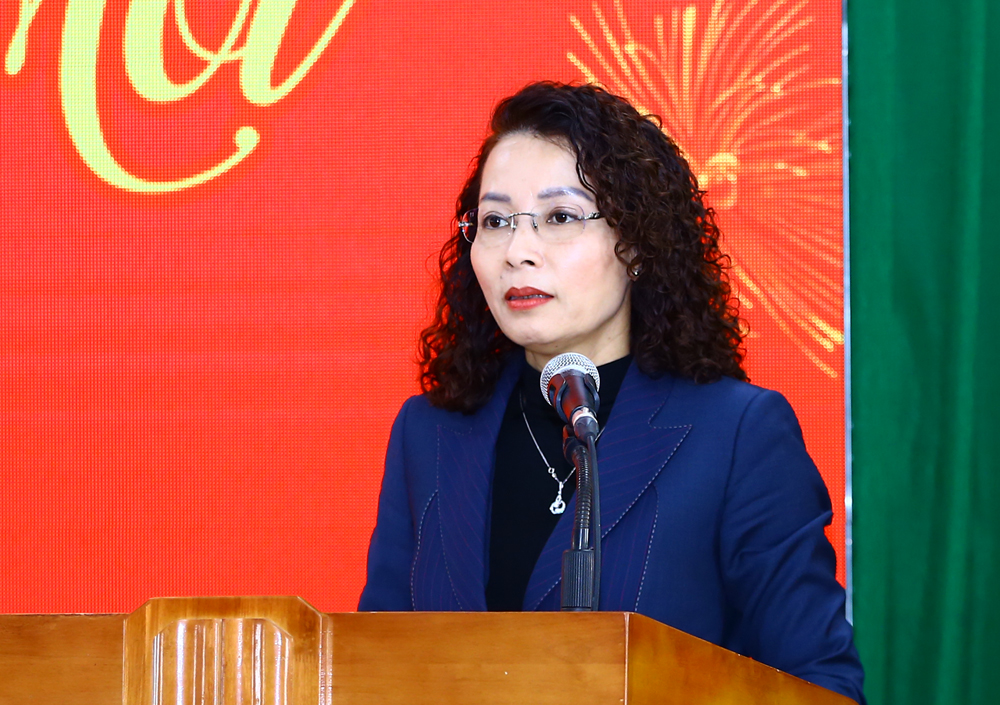 Đồng chí Nguyễn Thị Hương phát biểu chúc Tết và giao nhiệm vụ.