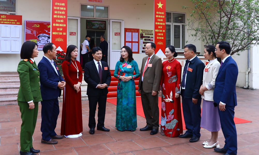 Sau khi dự lễ khai mạc tại tổ dân phố Trung, đồng chí Nguyễn Thị Hương cùng thành viên Tổ công tác đã đi kiểm tra, nắm bắt tình hình công tác bầu cử tại một số khu vực bỏ phiếu thuộc các phường: Việt Yên, Tự Lạn, Nếnh, Vân Hà.