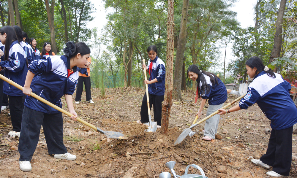 Các em học sinh tham gia trồng cây.