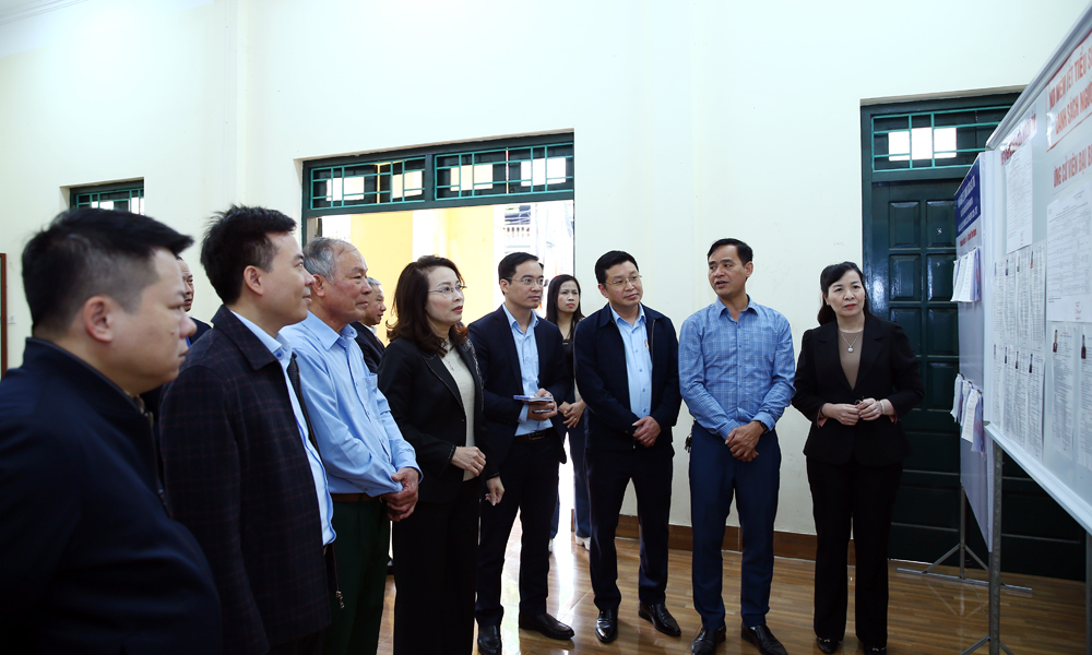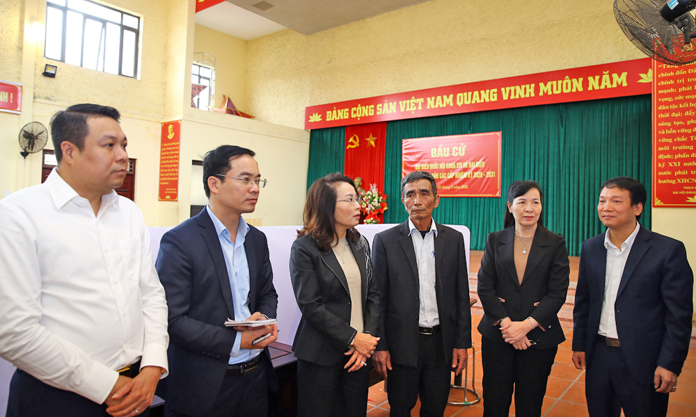 Cùng đi có đồng chí Nguyễn Thị Hà, Ủy viên Ban Thường vụ Tỉnh ủy, Chủ tịch Ủy ban MTTQ tỉnh, Phó Trưởng Ban Chỉ đạo bầu cử, Phó Chủ tịch Ủy ban bầu cử tỉnh; lãnh đạo Văn phòng Tỉnh ủy, Sở Nội vụ.