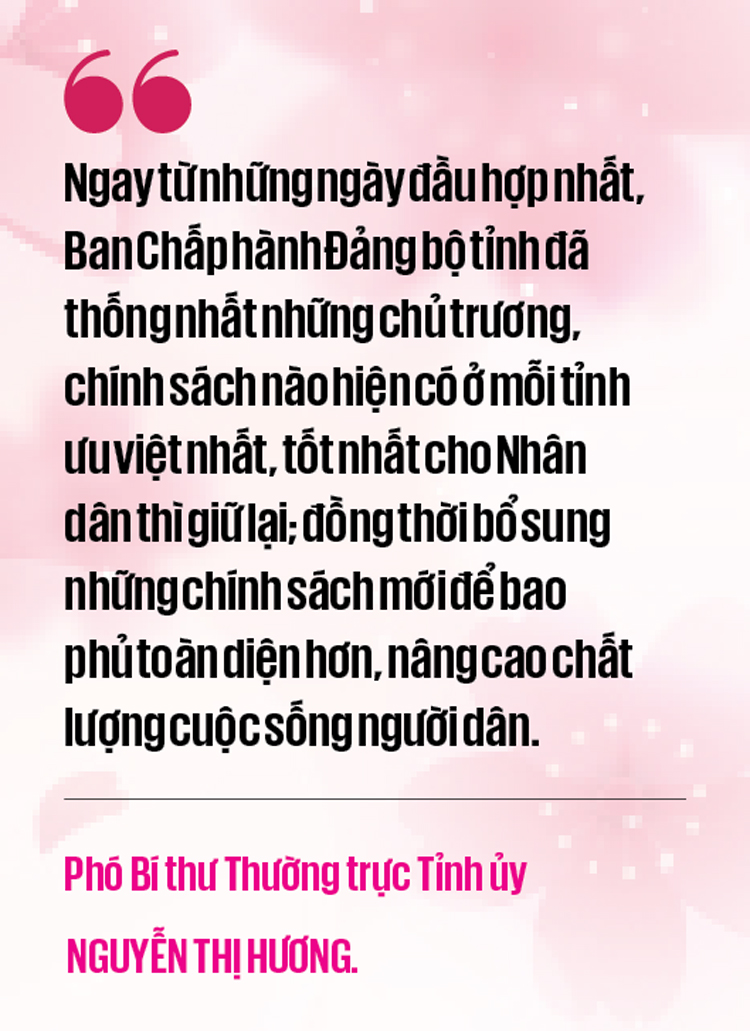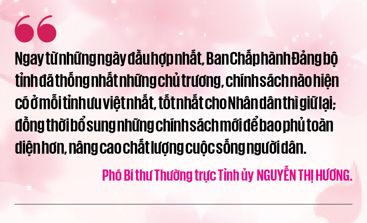 Đồng chí Nguyễn Thị Hương: Tỉnh Bắc Ninh mới được thành lập trên cơ sở hợp nhất hai tỉnh Bắc Giang và Bắc Ninh, mở ra không gian mới, động lực mới và thời cơ mới. Ngay từ những ngày đầu hợp nhất, Ban Chấp hành Đảng bộ tỉnh đã thống nhất những chủ trương, chính sách nào hiện có ở mỗi tỉnh ưu việt nhất, tốt nhất cho Nhân dân thì giữ lại; đồng thời bổ sung những chính sách mới để bao phủ toàn diện hơn, nâng cao chất lượng cuộc sống người dân.