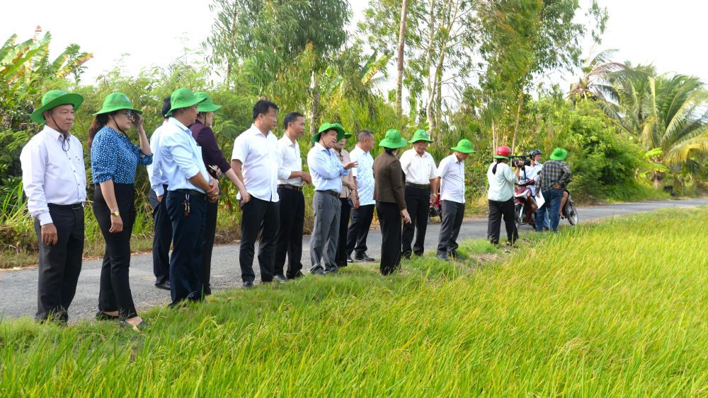 Đồng chí Phan Văn Thắng đã đến khảo sát thực tế tại các trà lúa của các hộ thành viên của HTX. Nhìn chung, các trà lúa phát triển tốt chuẩn bị thu hoạch với sản lượng ước tính khoảng 1 tấn/1.000 m2.