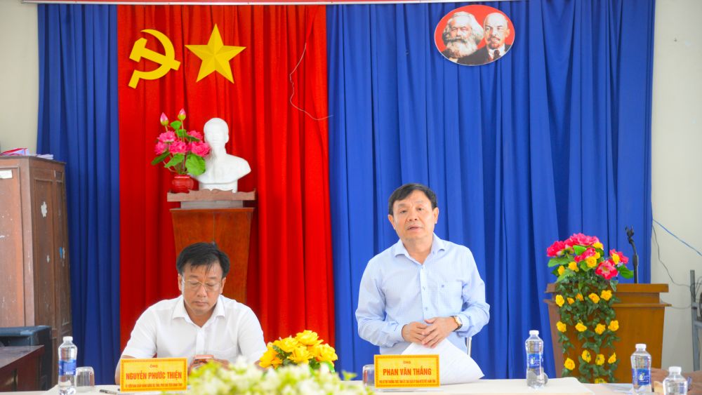 Phát biểu tại buổi làm việc, đồng chí Phan Văn Thắng đề nghị các ngành và địa phương rà soát lại diện tích quy hoạch đất vườn, sản xuất kém hiệu quả, xã chú ý, quản lý nhà nước phải kiểm soát, quy hoạch sản xuất; nhất là trong HTX, quy hoạch diện tích phù hợp, không manh mún. Hạ tầng sản xuất, kinh thủy lợi, xâm nhập mặn, hạn chế phụ thuộc vào tự nhiên.