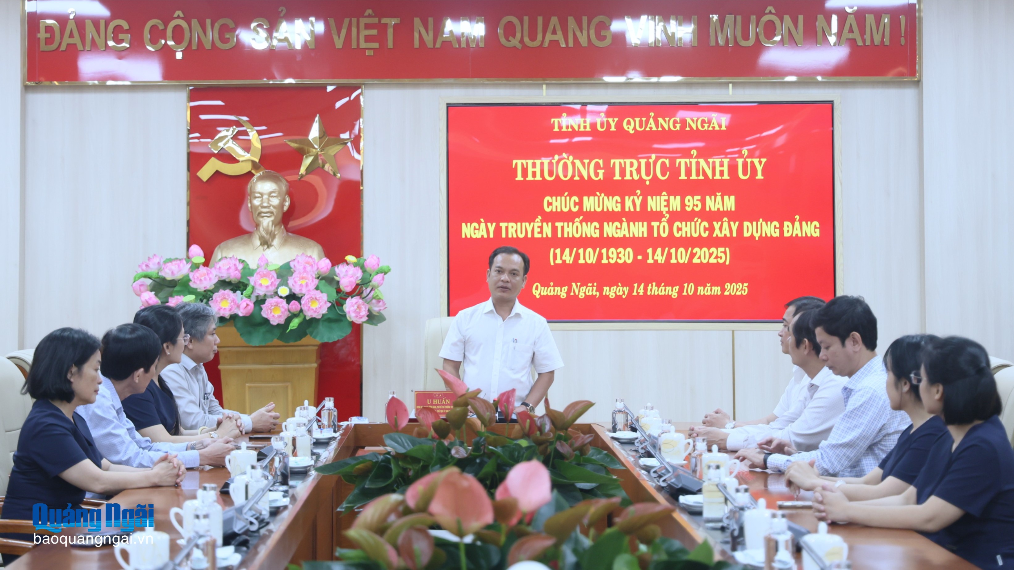 Chiều 14/10, Ủy viên dự khuyết Trung ương Đảng, Phó Bí thư Thường trực Tỉnh ủy, Trưởng đoàn ĐBQH tỉnh, Chủ tịch Ủy ban MTTQ Việt Nam tỉnh U Huấn đến thăm, chúc mừng Ban Tổ chức Tỉnh ủy và Văn phòng Tỉnh ủy nhân kỷ niệm 95 năm Ngày truyền thống ngành Tổ chức xây dựng Đảng (14/10/1930 – 14/10/2025) và 95 năm Ngày truyền thống Văn phòng cấp ủy (18/10/1930 – 18/10/2025).