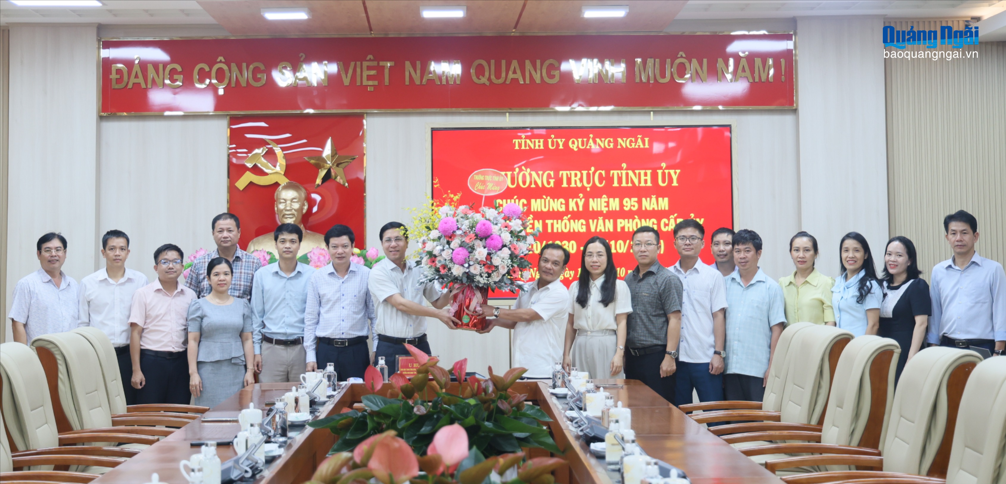 Đồng chí U Huấn tặng hoa chúc mừng Văn phòng Tỉnh ủy.