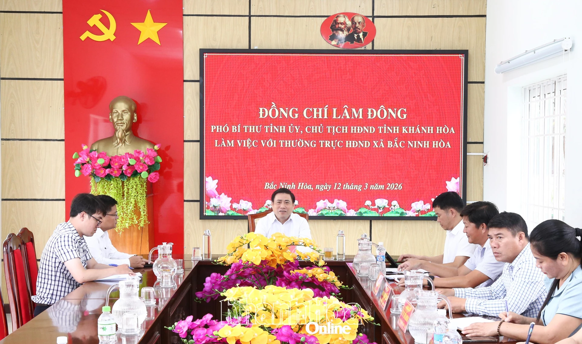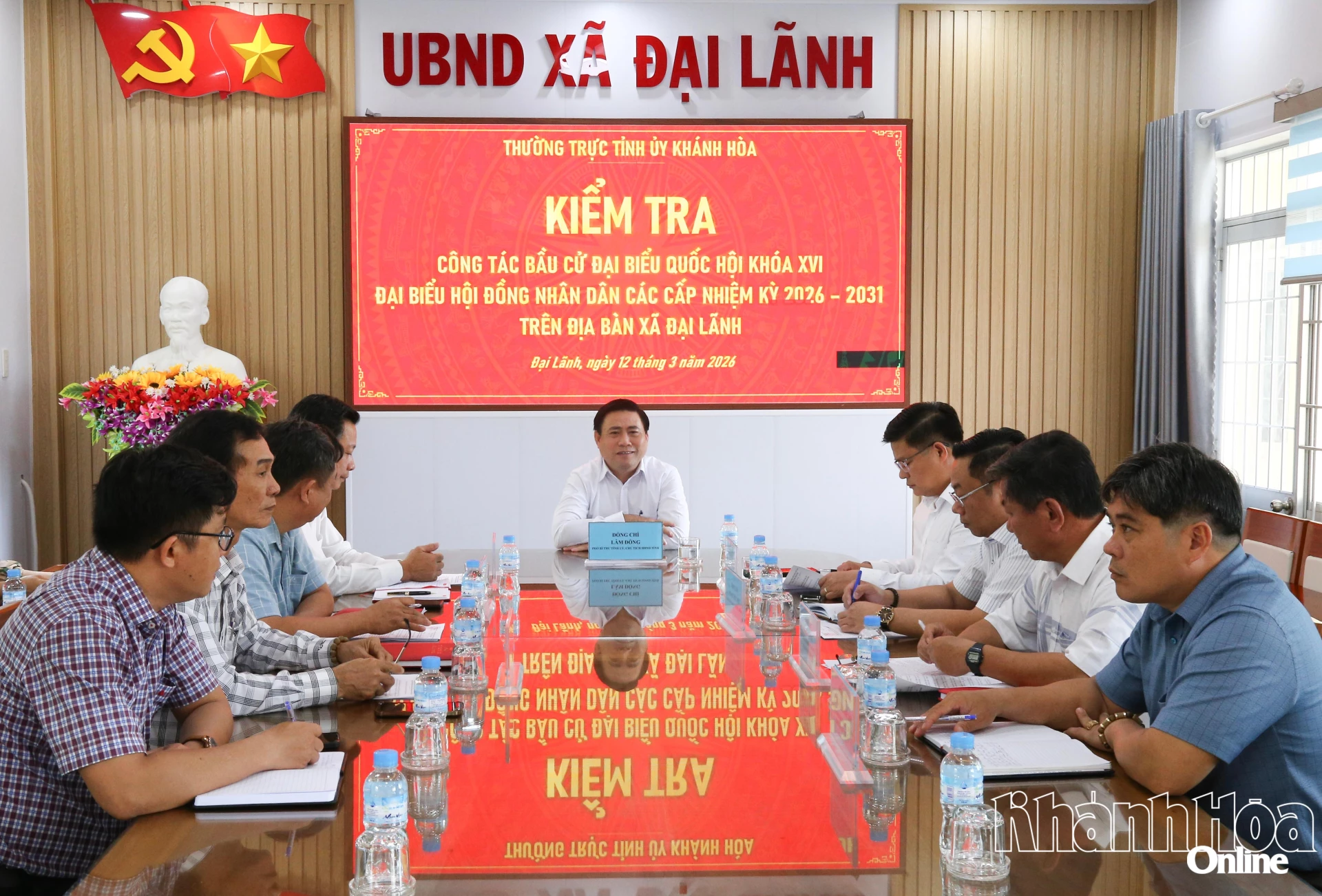 Ngày 12-3, đồng chí Lâm Đông - Phó Bí thư Tỉnh ủy, Chủ tịch HĐND tỉnh, Phó Trưởng Ban Chỉ đạo Bầu cử tỉnh đã làm việc với các xã: Đại Lãnh, Vạn Ninh, Vạn Hưng, Bắc Ninh Hòa, Tân Định về công tác chuẩn bị bầu cử đại biểu Quốc hội khóa XVI và đại biểu HĐND các cấp nhiệm kỳ 2026 - 2031 và đi kiểm tra thực tế một số khu vực bỏ phiếu tại các địa phương.