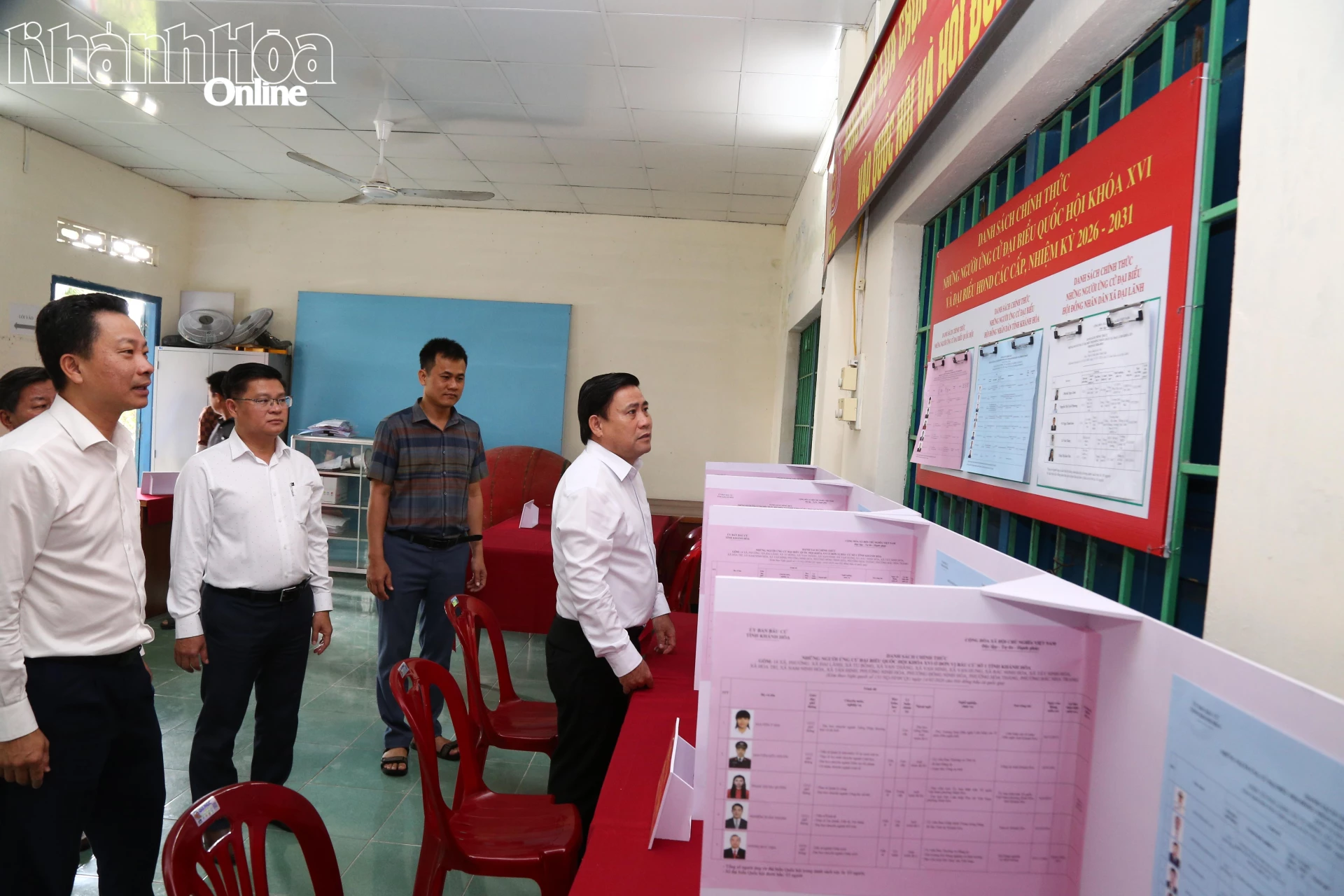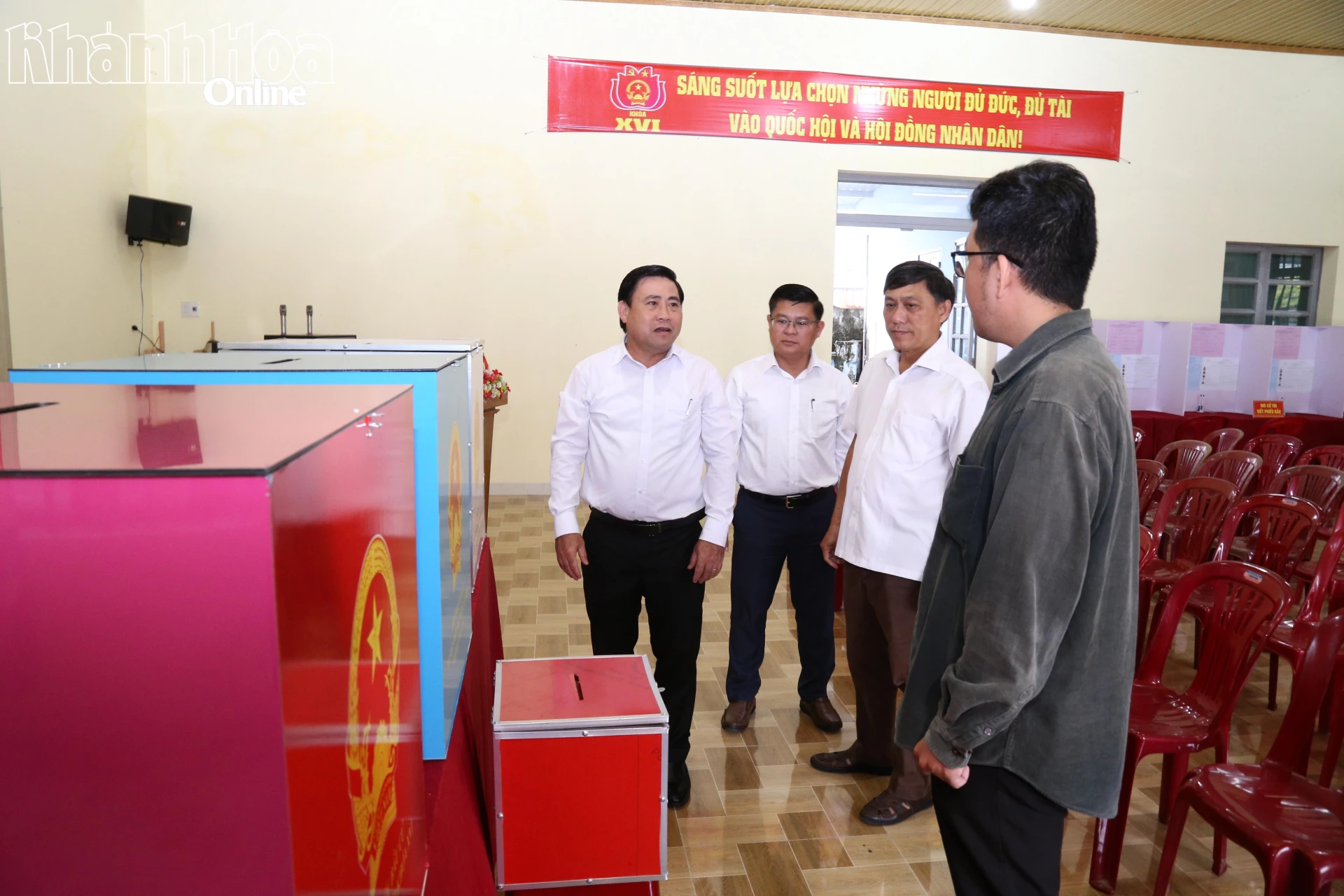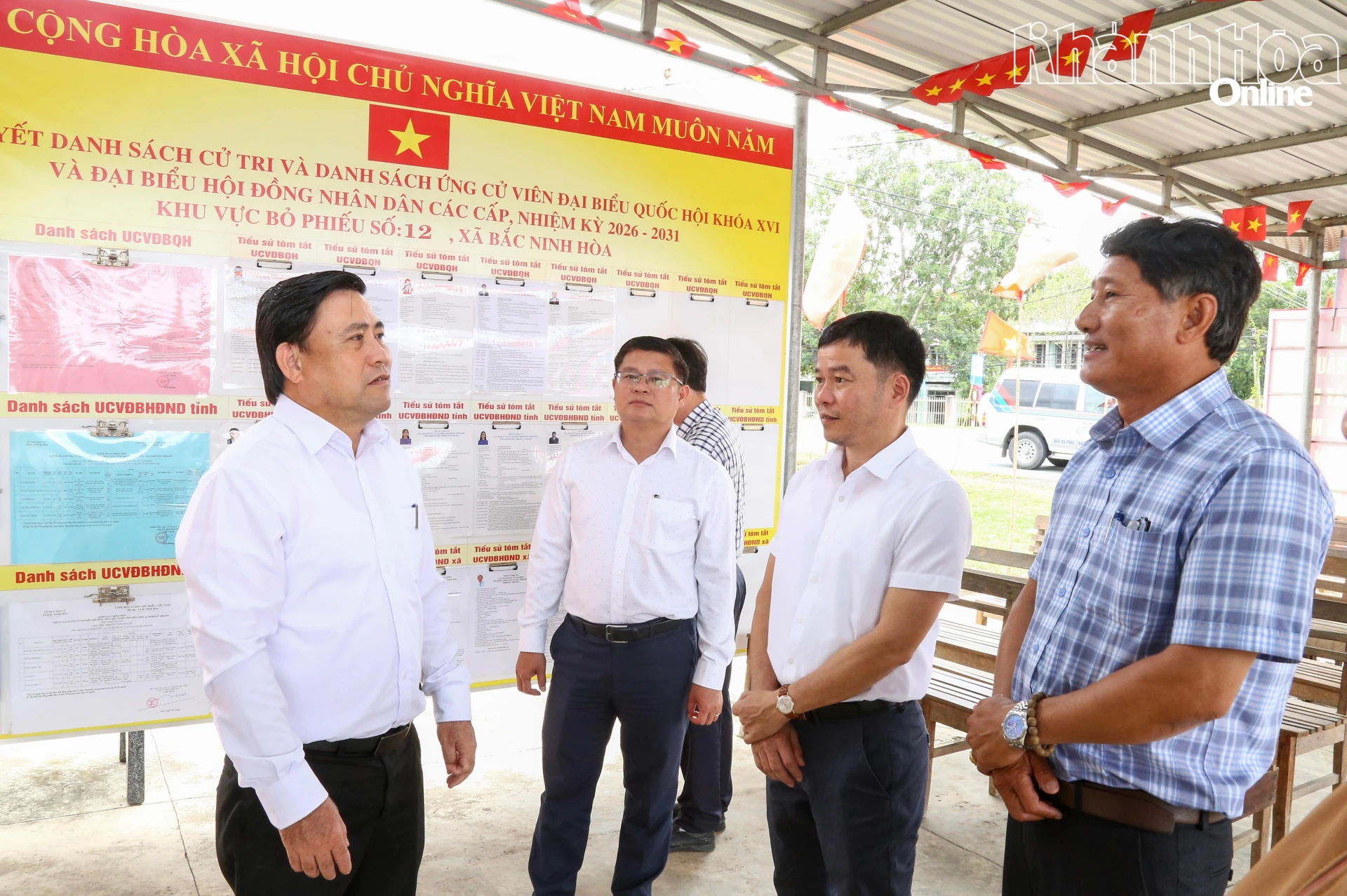 Đồng chí Lâm Đông kiểm tra thực tế tại Khu vực bỏ phiếu số 12 (xã Bắc Ninh Hòa).