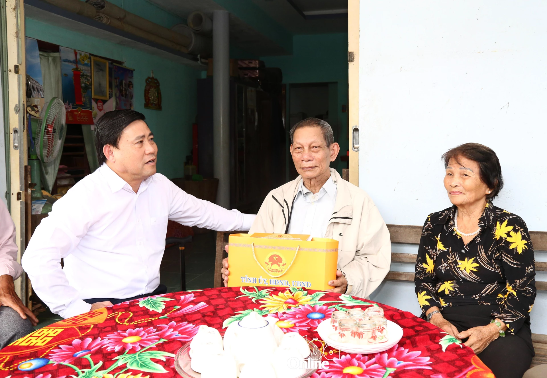 Dịp này, đồng chí Lâm Đông trao quà Tết của Tỉnh ủy, HĐND,UBND, Ủy ban MTTQ Việt Nam tỉnh và quà của Thường trực HĐND tỉnh cho gia đình đồng chí Nguyễn Lương.
