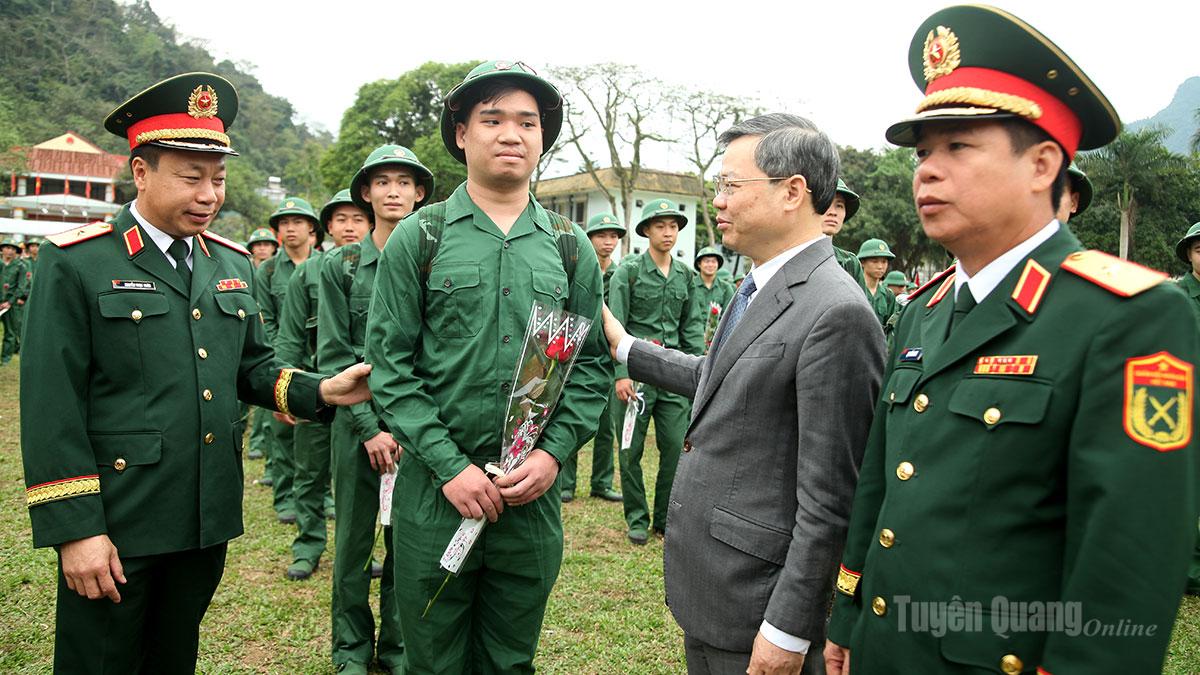Tại buổi lễ, Phó Bí thư Tỉnh ủy, Chủ tịch HĐND tỉnh Nguyễn Văn Sơn và Thiếu tướng Nguyễn Ngọc Ngân, Phó Chủ nhiệm Chính trị Quân khu 2 cùng các đồng chí lãnh đạo đã tặng hoa, động viên, chúc mừng các tân binh nhập ngũ mạnh khỏe, vững vàng ý chí, làm rạng danh quê hương Tuyên Quang.