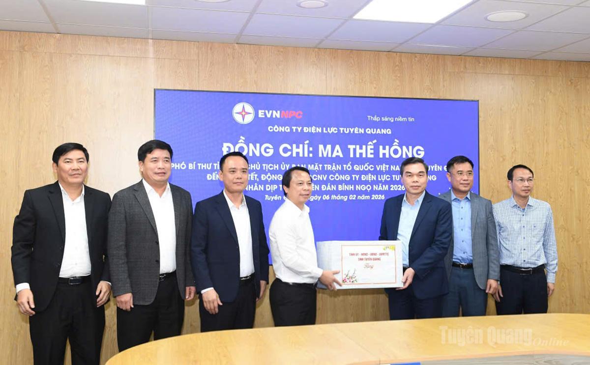 Phó Bí thư Tỉnh ủy, Chủ tịch Ủy ban MTTQ Việt Nam tỉnh Ma Thế Hồng tặng quà động viên cán bộ, nhân viên Công ty Điện lực Tuyên Quang.