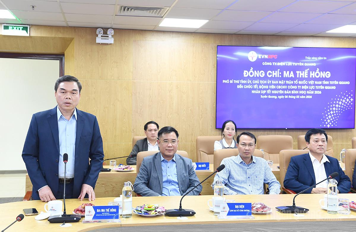 Phó Bí thư Tỉnh ủy, Chủ tịch Ủy ban MTTQ Việt Nam tỉnh Ma Thế Hồng phát biểu tại buổi thăm, chúc Tết tại Công ty Điện lực Tuyên Quang.