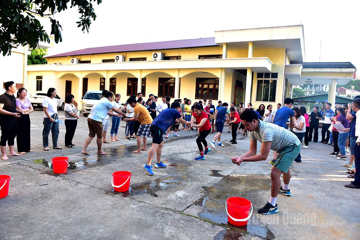 Cán bộ, công chức, người lao động Văn phòng Tỉnh ủy tham gia các hoạt động thi đấu thể thao và chơi trò chơi dân gian, tạo không khí vui tươi, gắn kết, thắt chặt tình đoàn kết trong cơ quan.