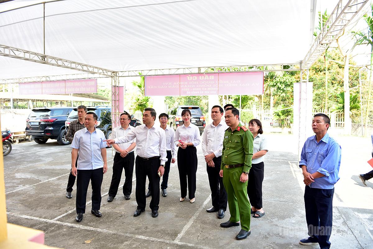 Đồng chí Ma Thế Hồng, Phó Bí thư Tỉnh ủy, Chủ tịch Ủy ban MTTQ Việt Nam tỉnh kiểm tra công tác chuẩn bị bầu cử tại Nhà văn hóa tổ dân phố Trung Môn 5, phường Minh Xuân.