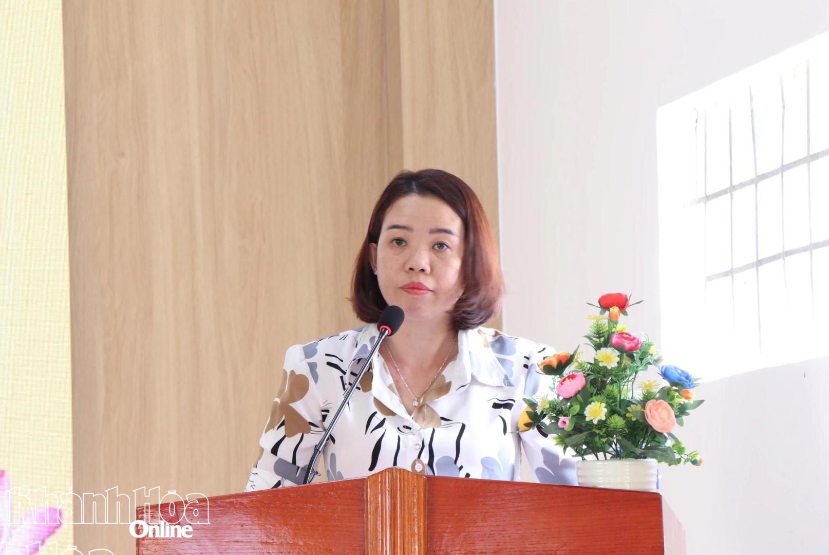 Bà Nguyễn Thị Nga - Chuyên viên Phòng Pháp chế, Sở Giáo dục và Đào tạo trình bày chương trình hành động.