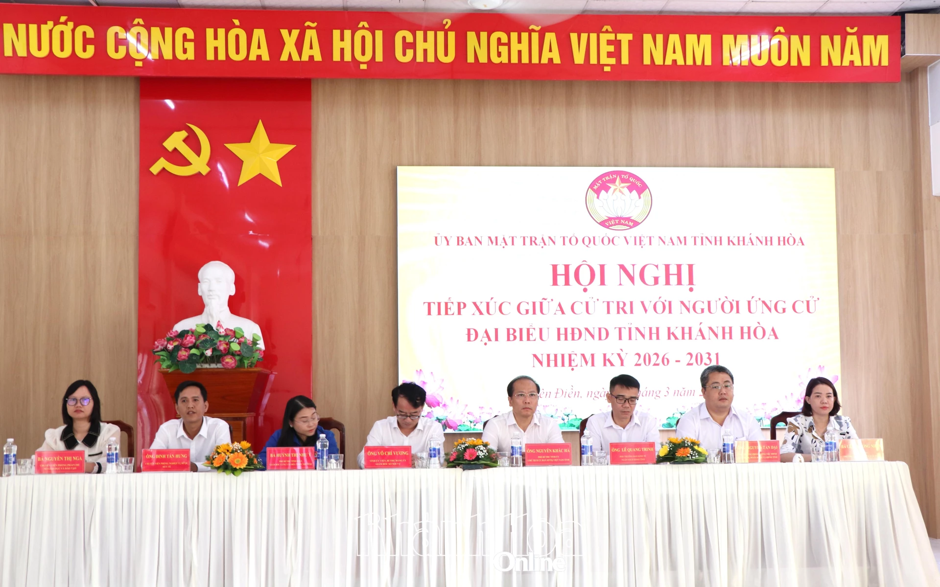 Sáng 3-3, tại xã Diên Điền, Ủy ban MTTQ Việt Nam tỉnh Khánh Hòa tổ chức hội nghị tiếp xúc giữa người ứng cử đại biểu HĐND tỉnh nhiệm kỳ 2026 - 2031 thuộc Đơn vị bầu cử số 9 với cử tri xã Diên Điền và xã Diên Lâm.