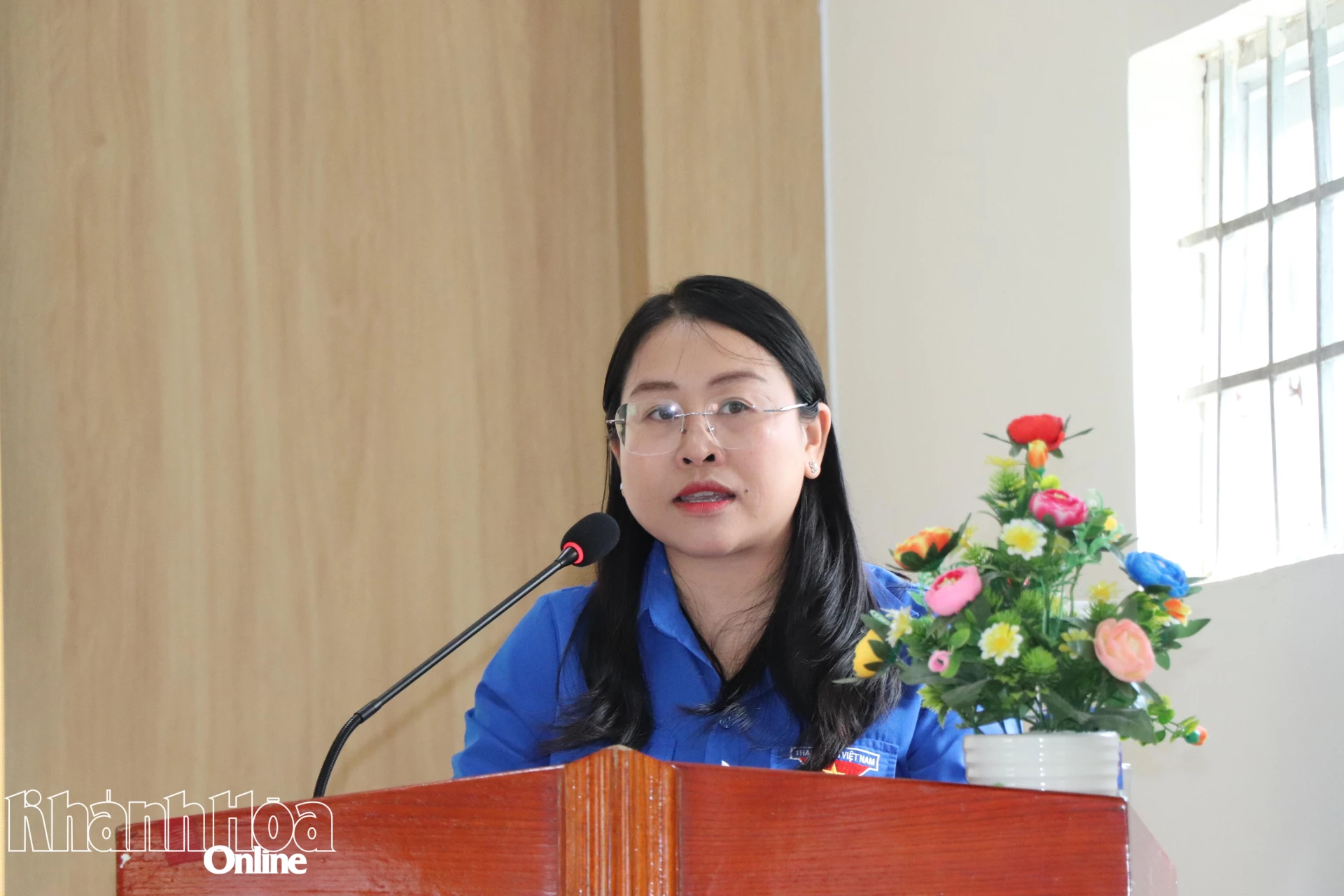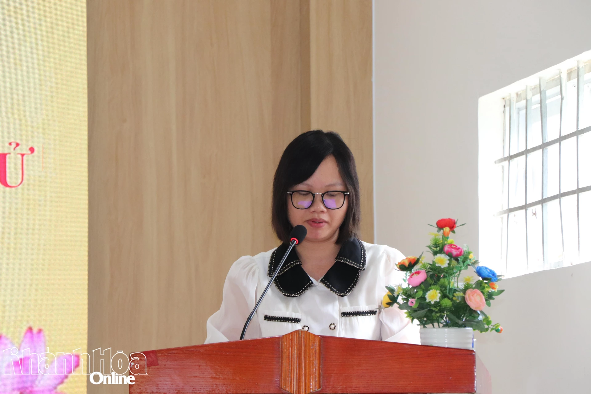 Bà Huỳnh Thị Như Ý - Phó Bí thư Tỉnh Đoàn, kiêm Giám đốc Cung Văn hóa Thiếu nhi tỉnh trình bày chương trình hành động.