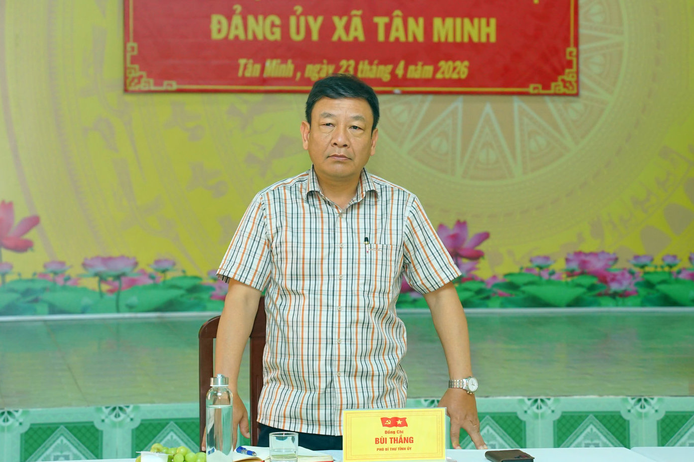 Đồng chí Bùi Thắng, Phó Bí thư Tỉnh ủy phát biểu chỉ đạo tại buổi làm việc với Ban Thường vụ Đảng ủy xã Tân Minh
