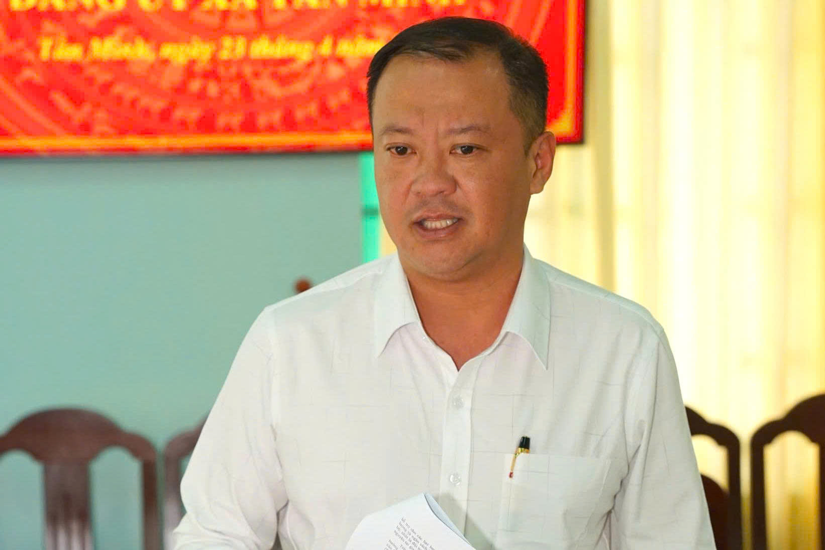 Đồng chí Trần Công Trường, Phó Bí thư Đảng ủy, Chủ tịch UBND xã Tân Minh phát biểu tại buổi làm việc
