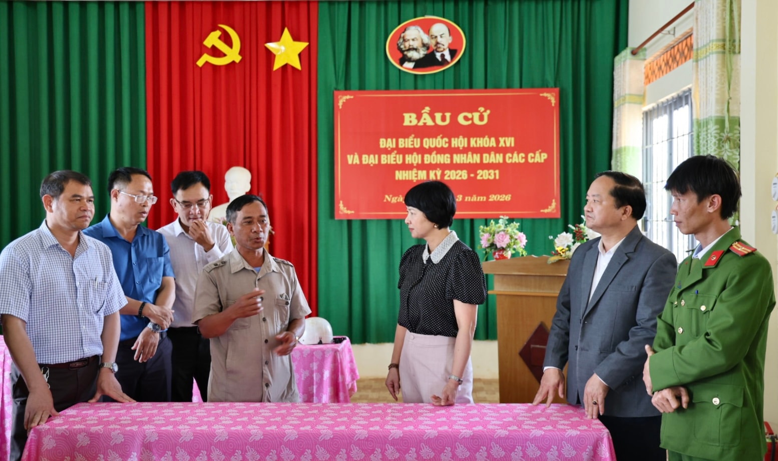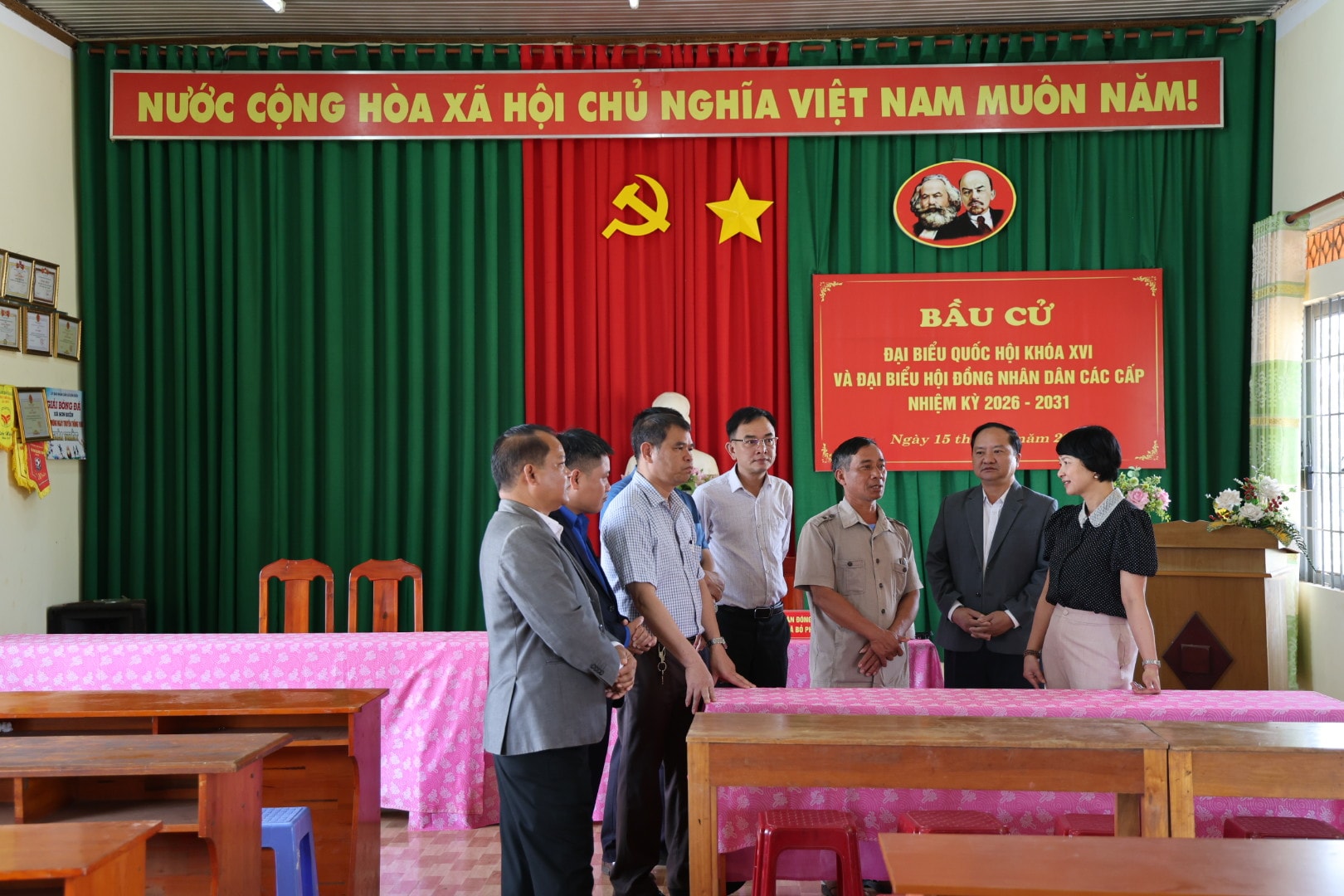 Khu vực bỏ phiếu tại xã Sơn Điền được trang trí rực rỡ, sẵn sàng cho ngày bầu cử đại biểu HĐND các cấp nhiệm kỳ 2026 - 2031