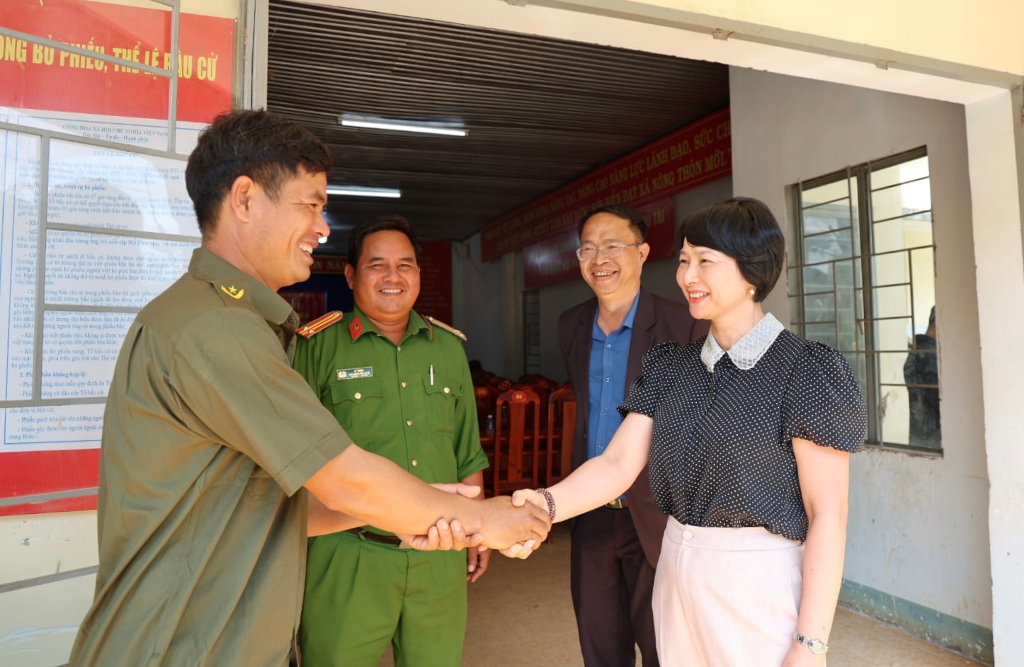 Phó Bí thư Tỉnh ủy Phạm Thị Phúc ghi nhận tinh thần trách nhiệm của các lực lượng, đồng thời đề nghị tiếp tục phối hợp chặt chẽ với chính quyền địa phương để giữ vững an ninh chính trị, trật tự an toàn xã hội, góp phần tổ chức thành công cuộc bầu cử.