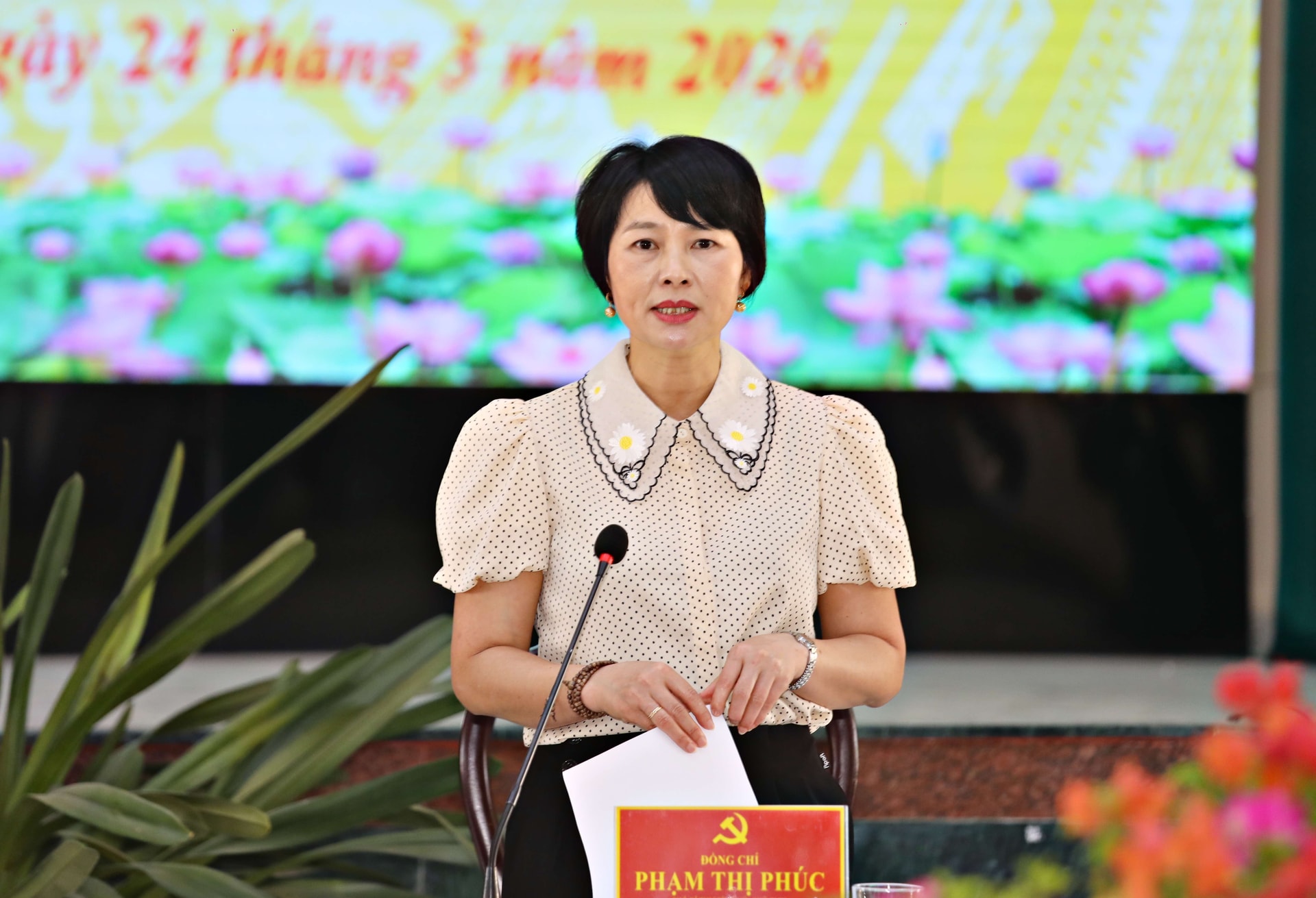 Phát biểu kết luận buổi làm việc, Phó Bí thư Tỉnh ủy, Chủ tịch Ủy ban MTTQ Việt Nam tỉnh Phạm Thị Phúc ghi nhận kết quả tích cực của 6 xã trong triển khai nhiệm vụ chính trị các tháng đầu năm 2026.