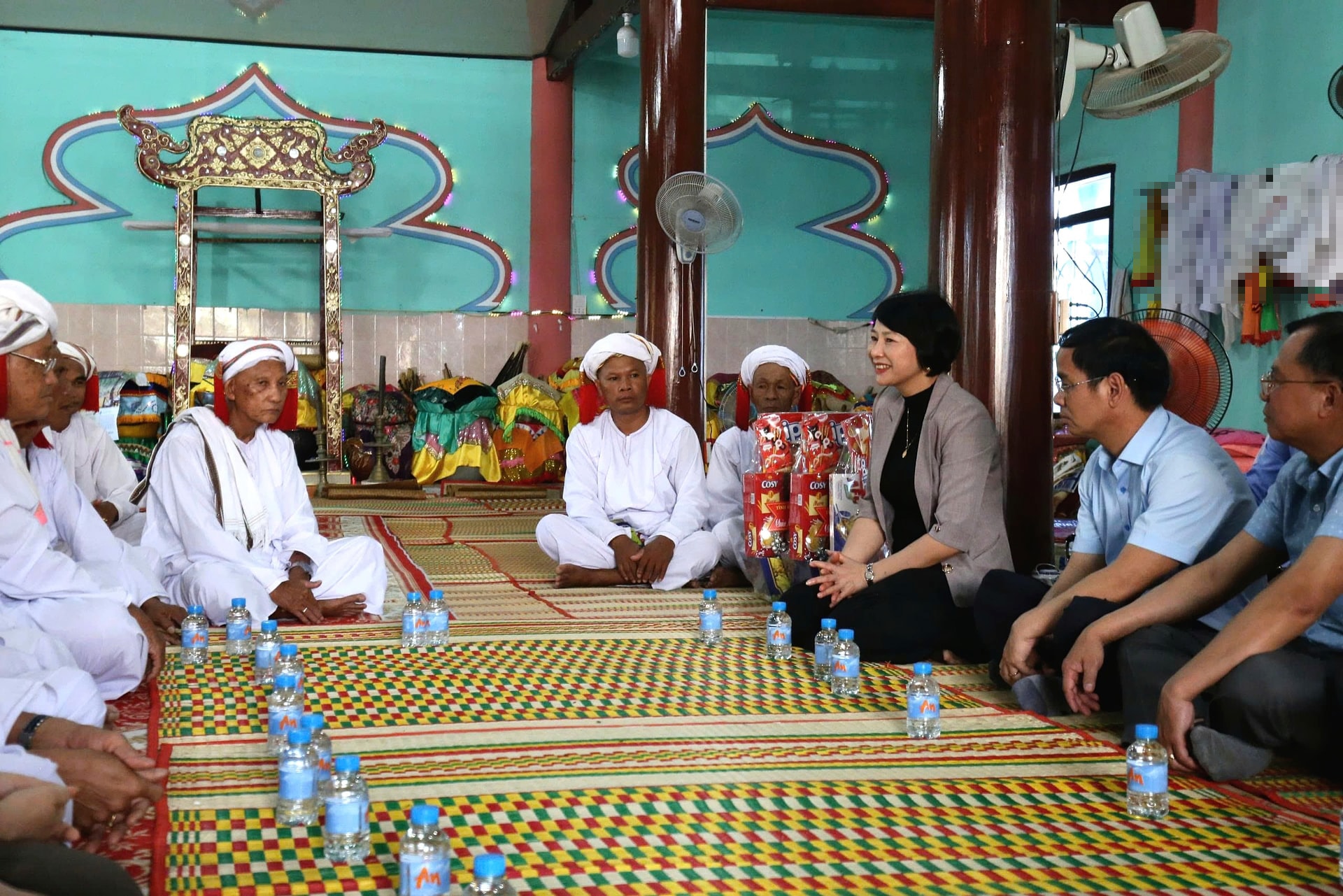 Đồng chí Phạm Thị Phúc, Phó Bí thư Tỉnh ủy, Chủ tịch Ủy ban MTTQ Việt Nam tỉnh Lâm Đồng thăm, chúc Tết Ramưwan tại chùa Bình Hòa, xã Bắc Bình