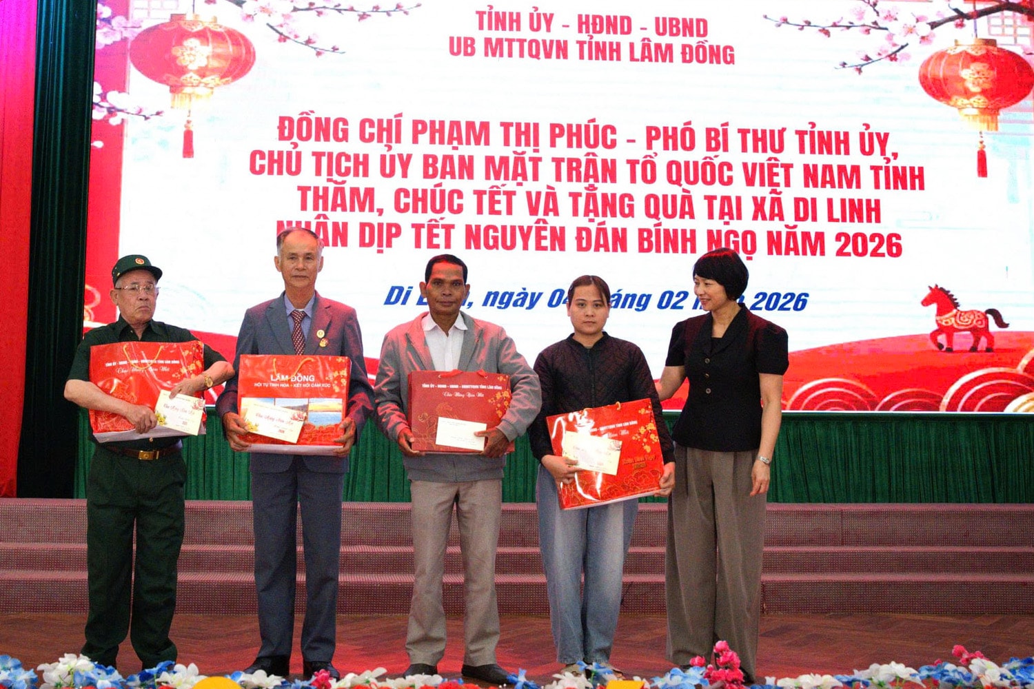 Tại buổi gặp mặt, sau khi nghe lãnh đạo xã Di Linh báo cáo về tình hình chuẩn bị vui Xuân, đón Tết cho Nhân dân địa phương, đồng chí Phạm Thị Phúc đã thay mặt lãnh đạo tỉnh ghi nhận và biểu dương những kết quả mà Đảng bộ, chính quyền và Nhân dân xã Di Linh đã đạt được trong năm qua. Đồng thời, ân cần thăm hỏi sức khỏe, đời sống của bà con Nhân dân.