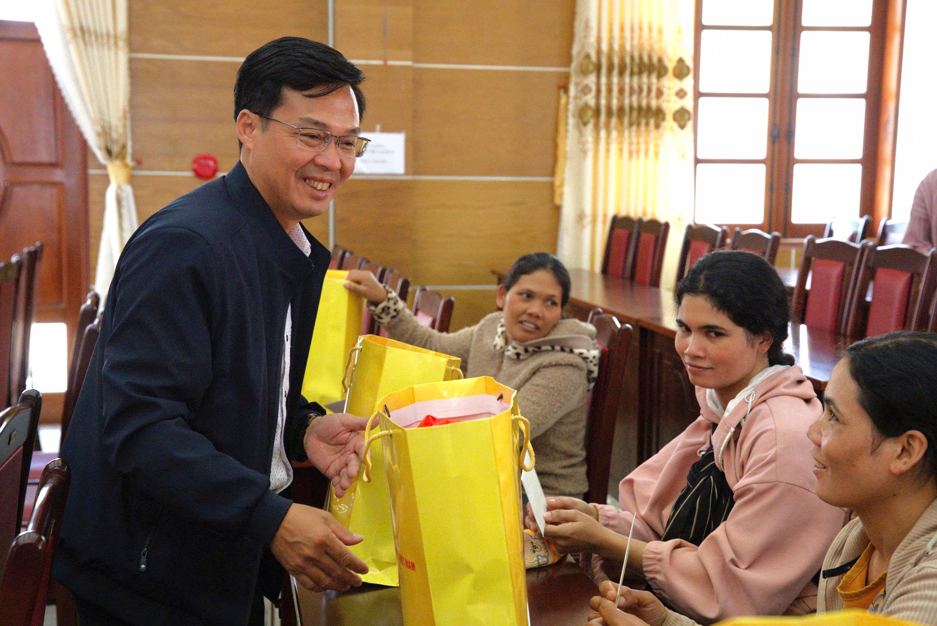 Đồng chí Đinh Văn Tuấn, Tỉnh ủy viên, Phó Chủ tịch UBND tỉnh Lâm Đồng tặng quà cho các gia đình khó khăn xã Di Linh