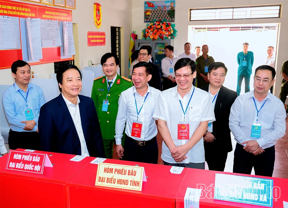 Tại xã Phùng Nguyên, đồng chí Phó Bí thư Tỉnh ủy Nguyễn Mạnh Sơn ghi nhận các khâu phát phiếu, hướng dẫn cử tri ghi phiếu và bỏ phiếu được thực hiện đúng quy định của pháp luật.