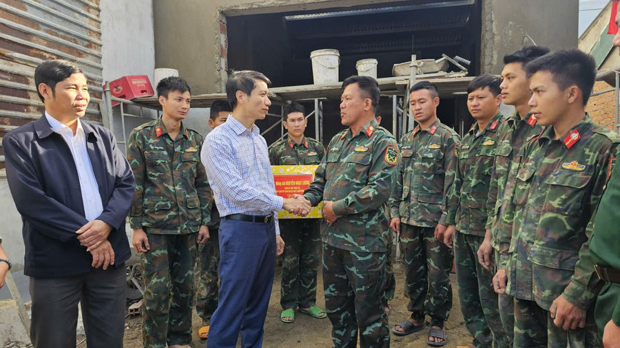 Theo đó, Phó Bí thư Tỉnh ủy, Chủ tịch Ủy ban MTTQ Việt Nam tỉnh Nguyễn Ngọc Lương đã đến thăm, tặng quà cho cán bộ, chiến sĩ Trung đoàn Thông tin 29 (Quân đoàn 34) và Trung đoàn Bộ binh 739 (Bộ Chỉ huy Quân sự tỉnh) đang tham gia xây dựng nhà ở cho các gia đình ở xã Tuy Phước Đông có nhà bị đổ sập trong đợt mưa bão trong tháng 11-2025.