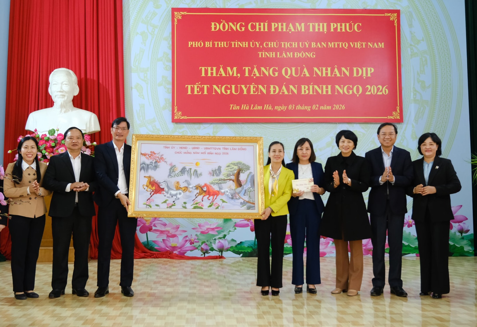 Đoàn công tác của Tỉnh ủy, HĐND, UBND, Ủy ban MTTQ Việt Nam tỉnh Lâm Đồng do đồng chí Phạm Thị Phúc làm trưởng đoàn đã đến thăm, chúc Tết Đảng bộ, chính quyền và tặng quà Tết cho Nhân dân xã Phúc Thọ Lâm Hà