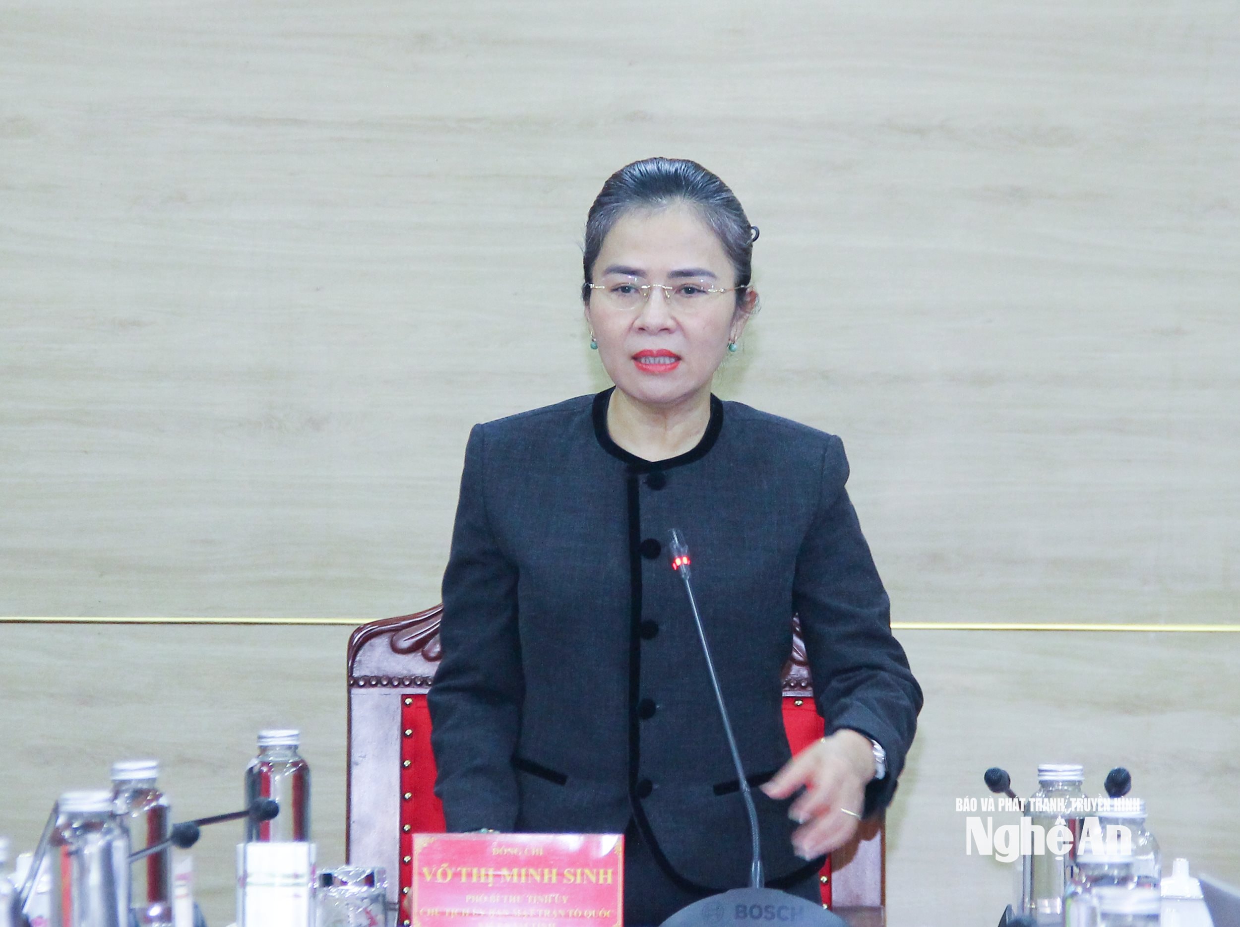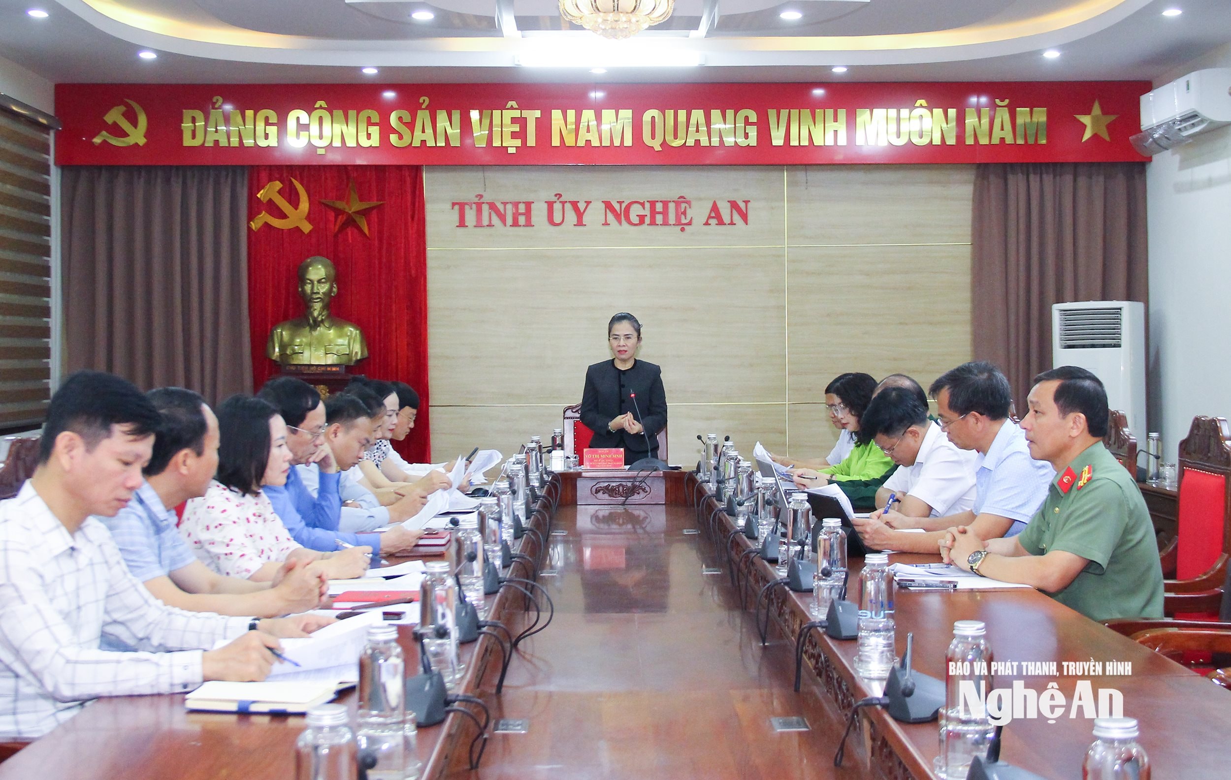 Đồng chí Võ Thị Minh Sinh – Phó Bí thư Tỉnh ủy, Chủ tịch Ủy ban MTTQ Việt Nam tỉnh, Trưởng Đoàn đại biểu Quốc hội tỉnh, Trưởng ban Chỉ đạo “Dân vận khéo” cấp tỉnh chủ trì cuộc họp.
