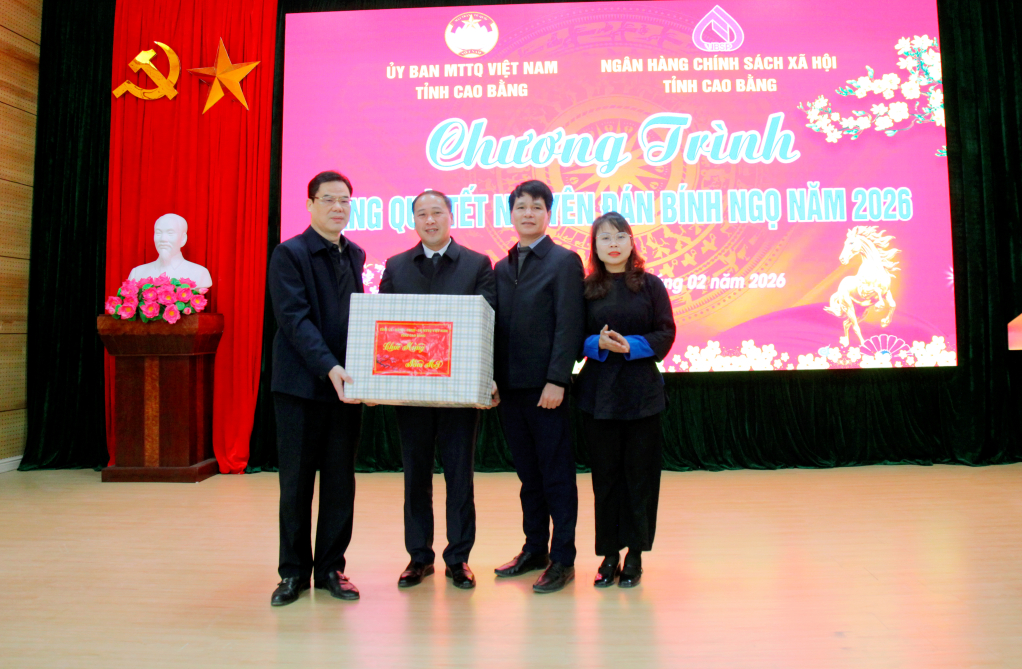 Đoàn công tác trao quà của Tỉnh ủy, HĐND, UBND, Ủy ban MTTQ tỉnh cho Đảng ủy, HĐND, UBND, Ủy ban MTTQ xã Bế Văn Đàn và Trường Mầm non Cách Linh, mỗi đơn vị 1 suất quà và 5 triệu đồng tiền mặt; đồng thời trao 250 suất quà cho các hộ nghèo, cận nghèo của xã, mỗi suất trị giá 500 nghìn đồng.