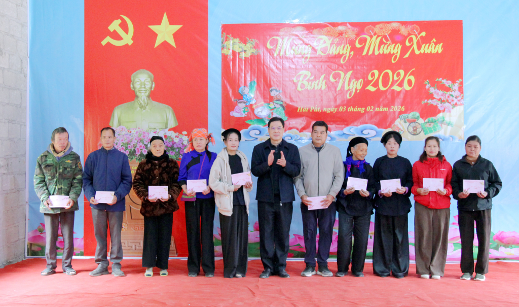 Tiếp đó, đoàn công tác đến chung vui, đón tết cùng bà con xóm Hát Pắt, xã Bế Văn Đàn. Xóm Hát Pắt là xóm biên giới, cách trung tâm xã 14 km, có 38 hộ với 126 nhân khẩu; đời sống nhân dân còn nhiều khó khăn. Hiện xóm còn 13 hộ nghèo, 22 hộ cận nghèo, chiếm 92%. Trong năm qua, xóm đã tích cực vận động nhân dân chuyển đổi cơ cấu cây trồng, vật nuôi; các hoạt động văn hóa - xã hội được triển khai sâu rộng; an sinh xã hội được bảo đảm; quốc phòng - an ninh được giữ vững.