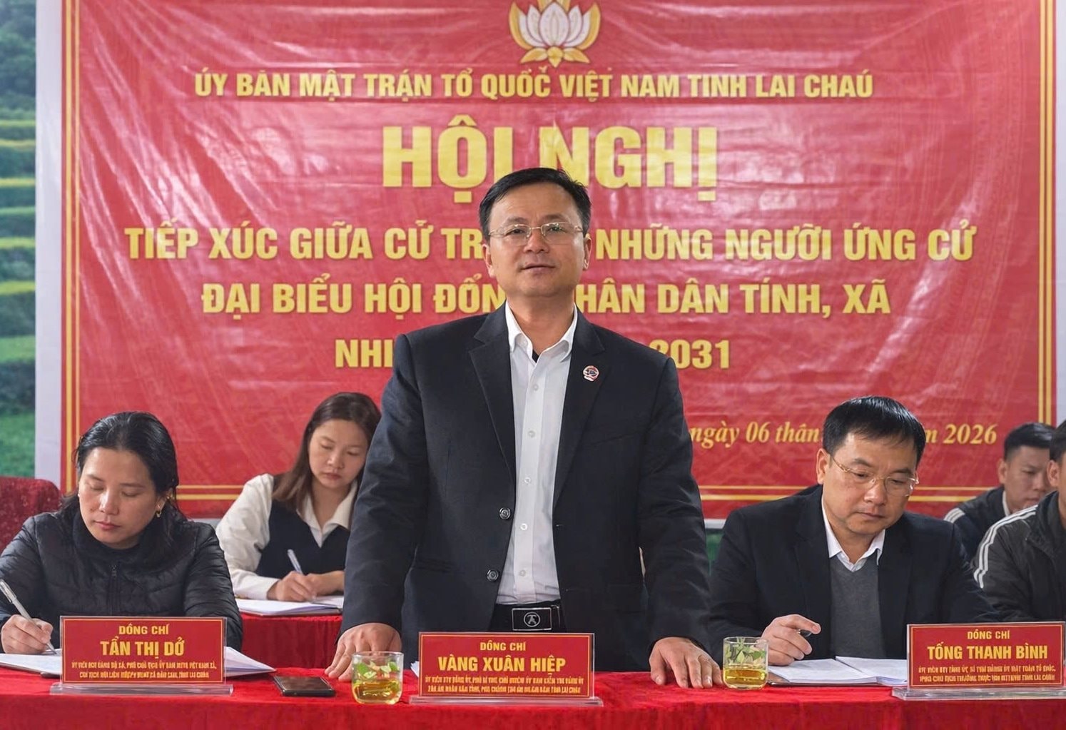 Trước cử tri, đồng chí Vàng Xuân Hiệp bày tỏ mong muốn nhận được sự quan tâm, ủng hộ và tín nhiệm của nhân dân để có cơ hội đóng góp nhiều hơn cho sự phát triển của tỉnh Lai Châu. Đồng chí khẳng định nếu được bầu làm đại biểu HĐND, bản thân sẽ tiếp tục rèn luyện phẩm chất đạo đức, nâng cao năng lực công tác, giữ gìn uy tín và trách nhiệm của người đại biểu dân cử.
