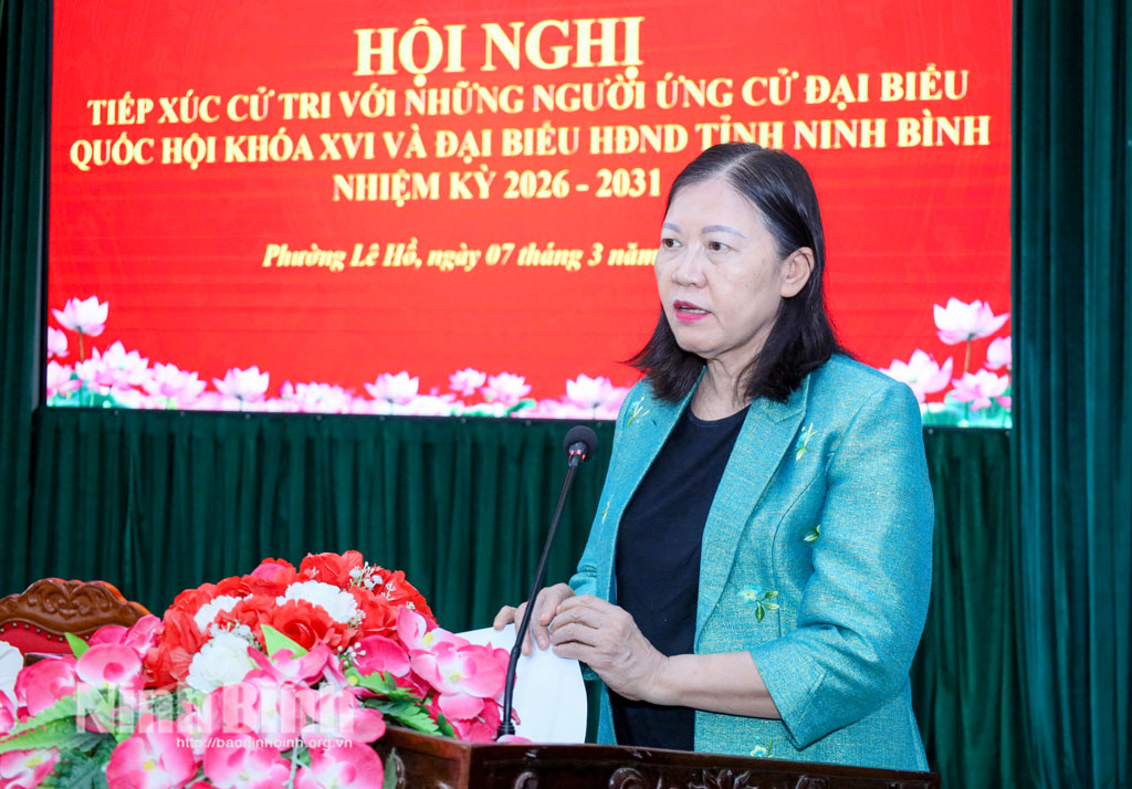 *Chiều 7/3, đồng chí Lê Thị Nga, Ủy viên Trung ương Đảng, Phó Chủ nhiệm Thường trực Ủy ban Dân nguyện và Giám sát của Quốc hội; đồng chí Đinh Thị Lụa, Phó Bí thư Thường trực Tỉnh ủy và các ứng cử viên đại biểu Quốc hội khóa XVI, ứng cử viên đại biểu HĐND tỉnh nhiệm kỳ 2026-2031 tại Đơn vị bầu cử số 1 đã tiếp xúc cử tri phường Lê Hồ và phường Nguyễn Úy.