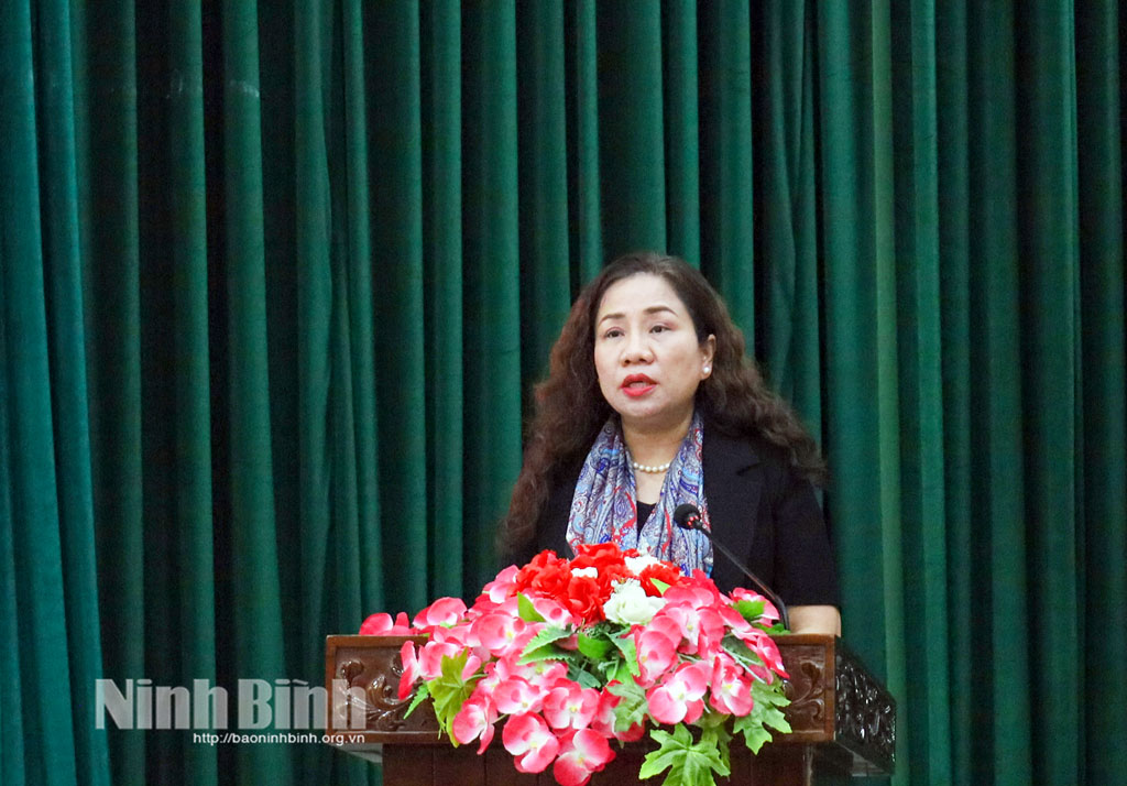 Đồng chí Đinh Thị Lụa, Phó Bí thư Thường trực Tỉnh ủy phát biểu tại hội nghị.