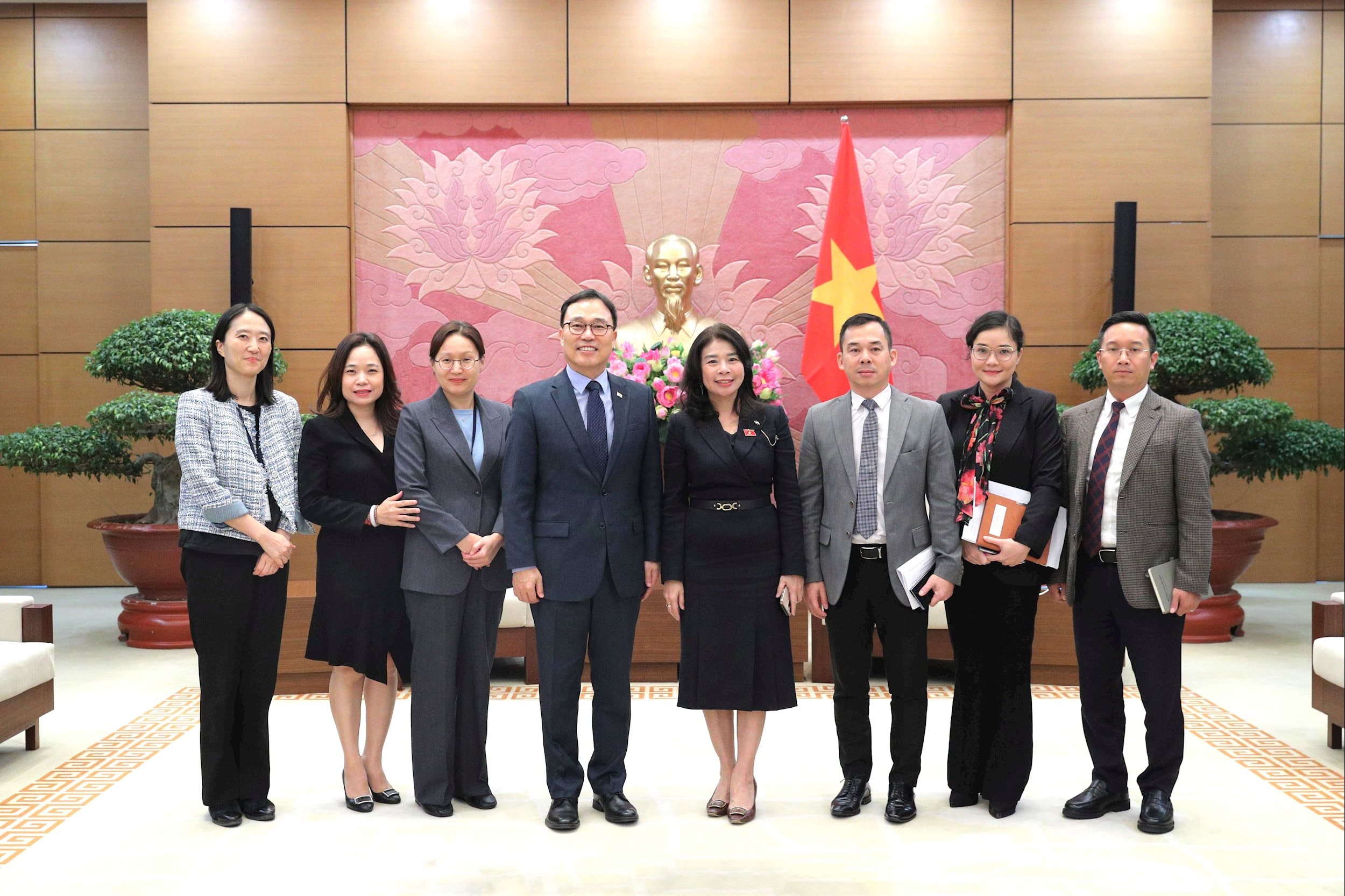 Đánh giá cao vai trò của Đại sứ và cán bộ, nhân viên Đại sứ quán Hàn Quốc tại Việt Nam thời gian qua đã tích cực, năng động phối hợp với Quốc hội, với các bộ, ngành, địa phương Việt Nam thúc đẩy triển khai các thỏa thuận của lãnh đạo cấp cao hai nước, Phó Chủ nhiệm Văn phòng Quốc hội Lê Thu Hà mong muốn, Đại sứ sẽ tiếp tục góp phần thúc đẩy hơn nữa quan hệ tốt đẹp giữa Việt Nam và Hàn Quốc nói chung, giữa Quốc hội hai nước nói riêng.