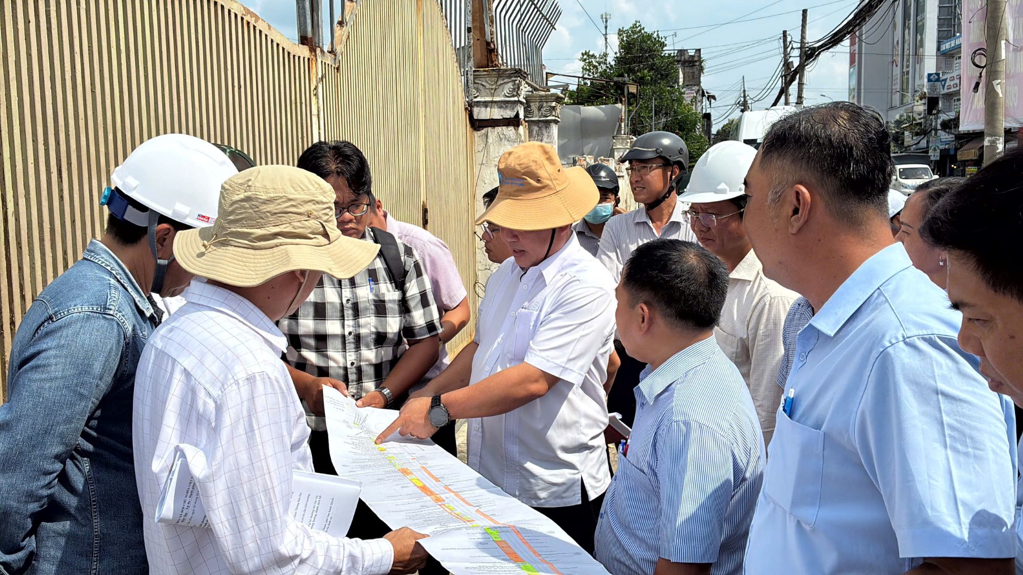 Phó Chủ tịch TP Nguyễn Văn Hòa cùng các sở, ngành, chủ đầu tư đi kiểm tra thực tế. Ảnh: NHẪN NAM