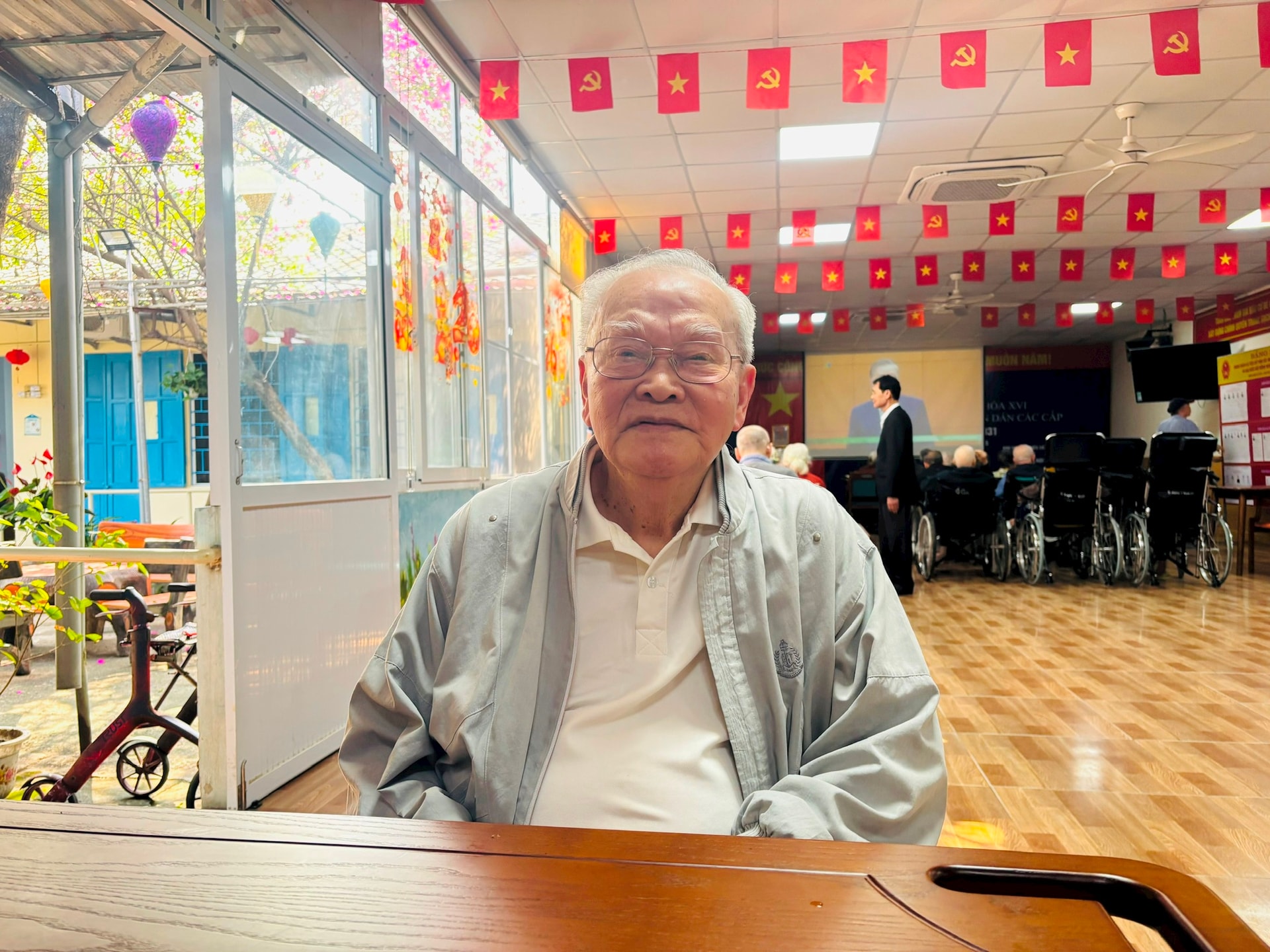 Cử tri Vũ Quốc Tuấn, 99 tuổi cho biết đã nghiên cứu kỹ thông tin ứng cử viên để chọn ra những người xứng đáng. Ảnh: PV
