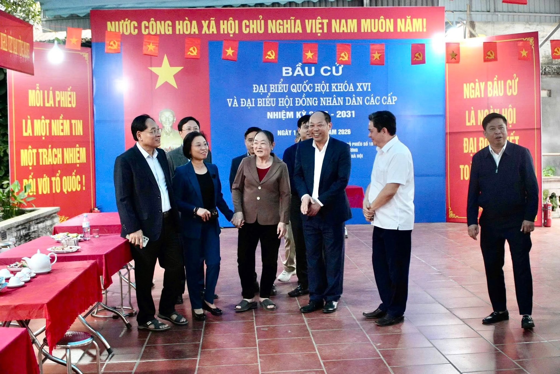 Đến nay, xã đã rà soát, lập và niêm yết danh sách cử tri tại 35 khu vực bỏ phiếu theo đúng thời gian quy định để nhân dân theo dõi, kiểm tra và kịp thời phản ánh, điều chỉnh khi cần thiết. Các điểm bỏ phiếu được chuẩn bị đầy đủ cơ sở vật chất phục vụ bầu cử như hòm phiếu, con dấu, tài liệu, biểu mẫu; đồng thời tổ chức trang trí khánh tiết, treo băng rôn, khẩu hiệu tuyên truyền, tạo không khí phấn khởi hướng tới ngày hội của cử tri.