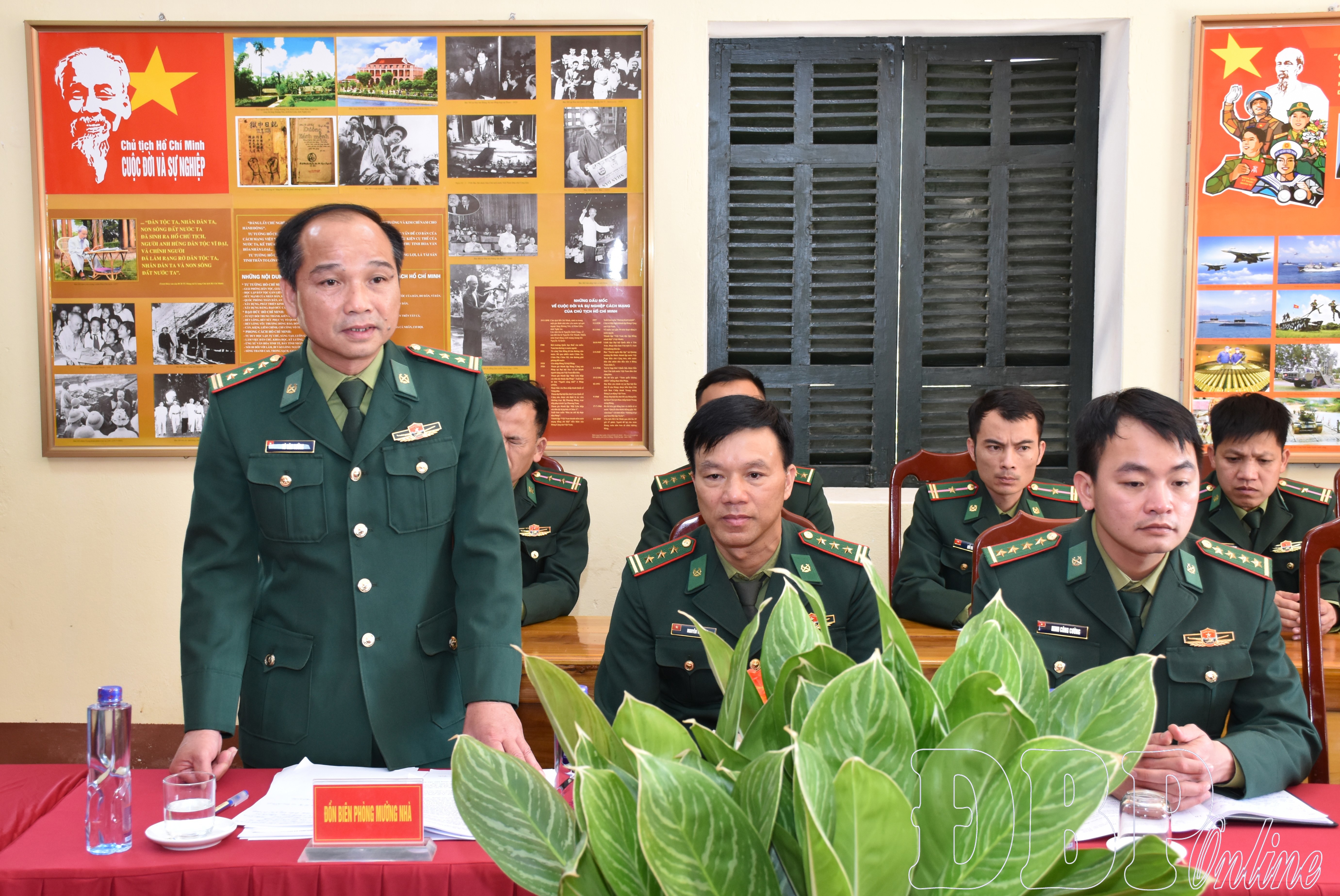 Lãnh đạo Đồn Biên phòng Mường Nhà báo cáo tình hình thực hiện nhiệm vụ thời gian qua.