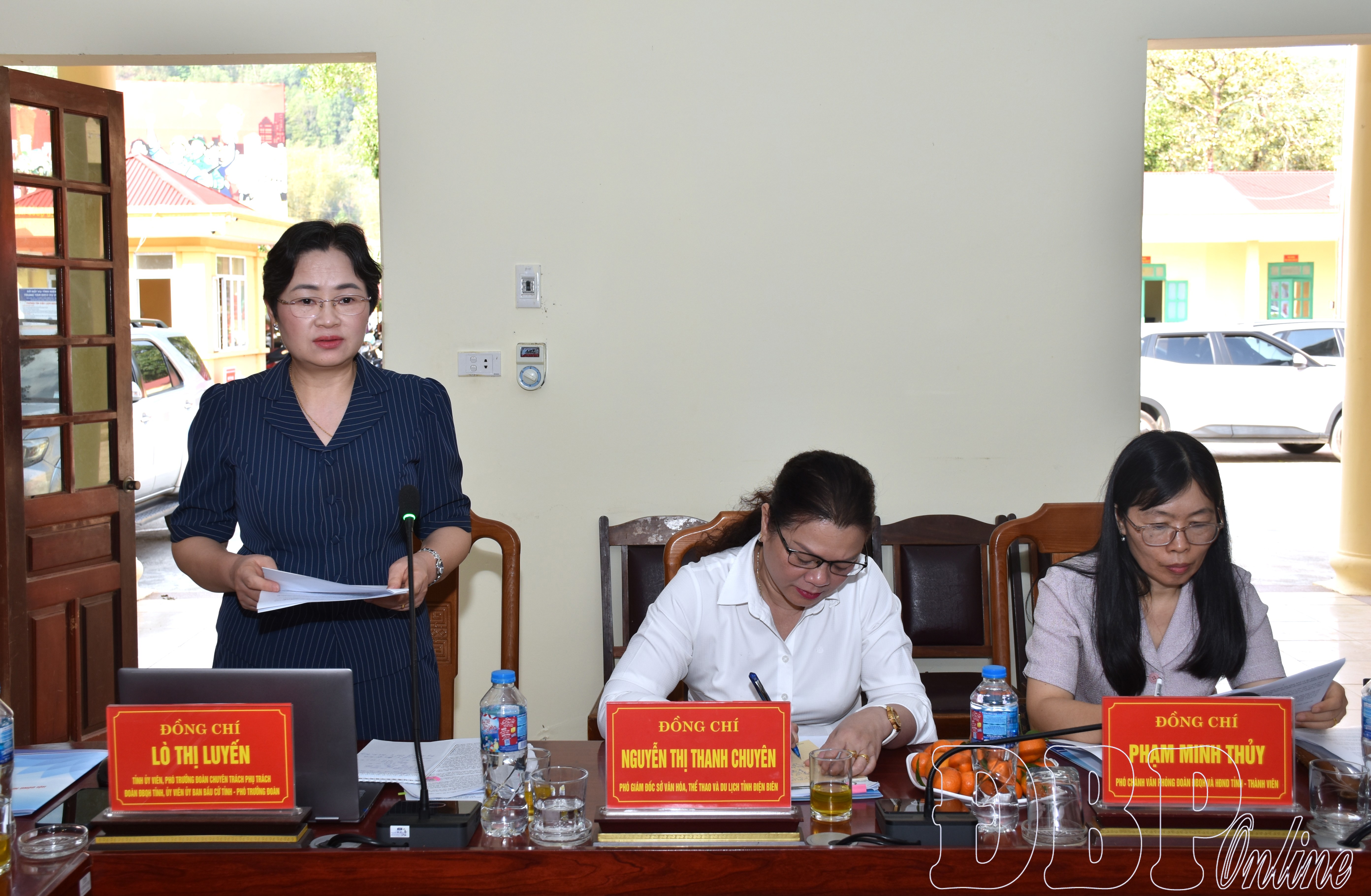Đồng chí Lò Thị Luyến, Phó Trưởng đoàn chuyên trách, phụ trách Đoàn ĐBQH tỉnh tham gia ý kiến tại buổi làm việc.