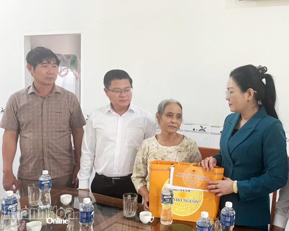Đồng chí Phạm Thị Xuân Trang thăm, tặng quà cho gia đình bà Đoàn Thị Dịn.