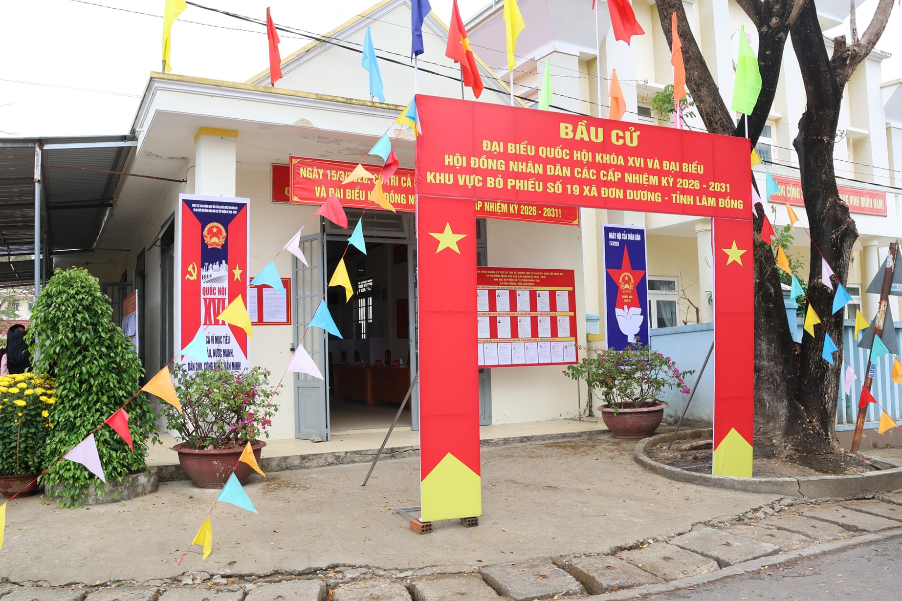 Khu vực bỏ phiếu tại xã Đơn Dương được chuẩn bị rất công phu, từ sớm