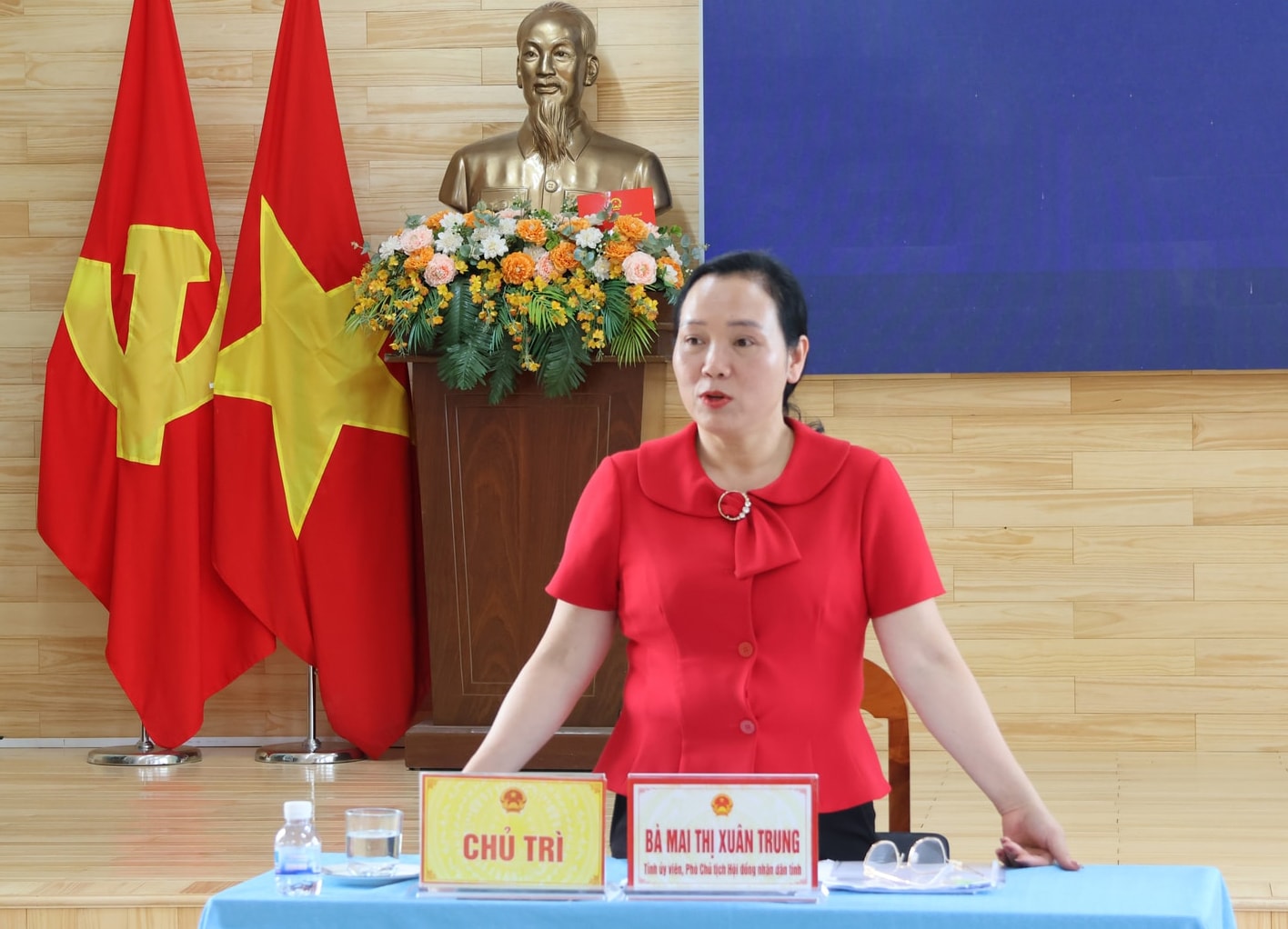 Đồng chí Mai Thị Xuân Trung - Tỉnh ủy viên, Phó Chủ tịch HĐND tỉnh đề nghị các xã tập trung cao độ cho công tác chuẩn bị vì thời gian còn rất ngắn, khối lượng công việc nhiều, địa bàn nhiều xã, khu vực bỏ phiếu xa cần được quan tâm, đôn đốc kỹ lưỡng