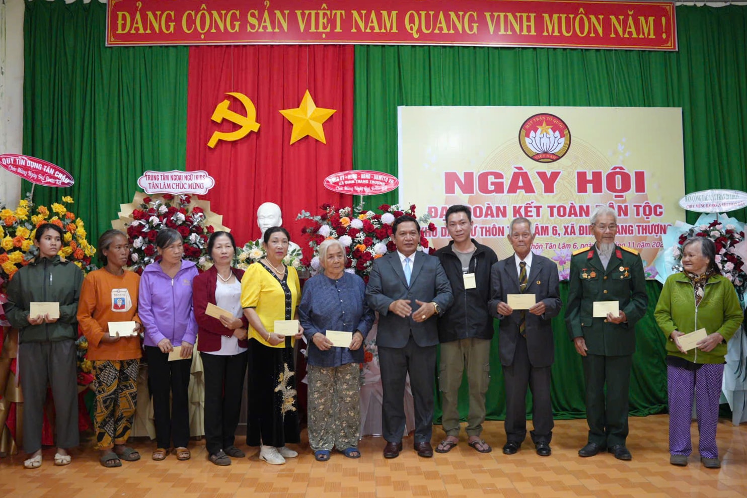 Nhân dịp này, thay mặt Tỉnh ủy, HĐND, UBND, Ủy ban MTTQ Việt Nam tỉnh Lâm Đồng, đồng chí K’ Mák đã trao tặng những phần quà ý nghĩa cho thôn Tân Lâm 6, các hộ gia đình khó khăn trên địa bàn, động viên bà con tiếp tục nỗ lực, gắn bó và phát huy sức mạnh cộng đồng để cùng nhau xây dựng thôn Tân Lâm 6 trở thành điểm sáng trong phong trào xây dựng nông thôn mới nâng cao của xã Đinh Trang Thượng.